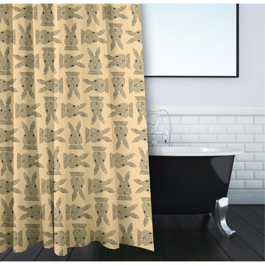 Enjoy a new style this season with a Criss Cross Bunnies Shower Curtain from our Funky Junky Collection. This durable and decorative polyester fabric shower curtain has a single sided design and a buttonhole top to easily refresh your bath for each season. It is made of 100% polyester that is quick drying. When it needs to be washed, just toss it into your washing machine, and then tumble dry. Everyone will enjoy the charm and style brought to your bath space by this decorative shower curtain! The combination of bright colors and charming designs from this collection are the perfect way to enliven your home decor.