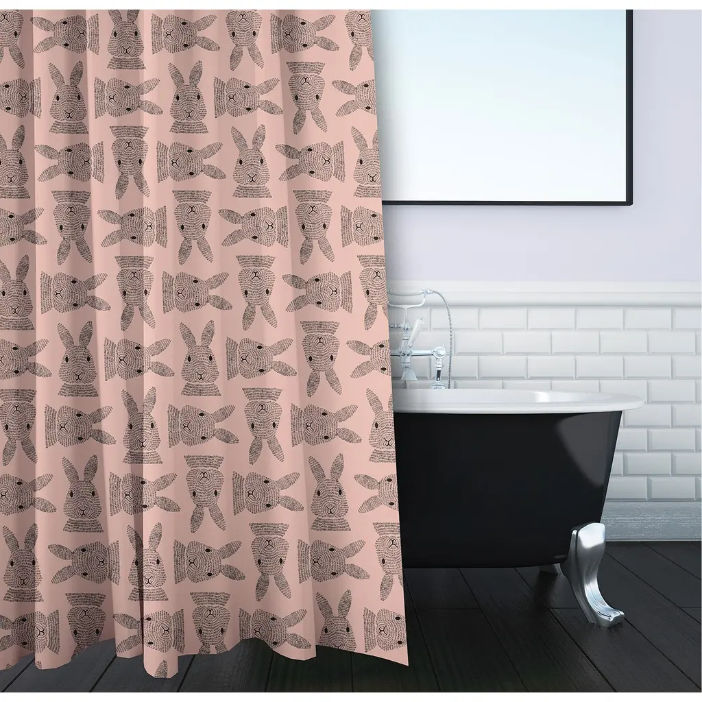 Enjoy a new style this season with a Criss Cross Bunnies Shower Curtain from our Funky Junky Collection. This durable and decorative polyester fabric shower curtain has a single sided design and a buttonhole top to easily refresh your bath for each season. It is made of 100% polyester that is quick drying. When it needs to be washed, just toss it into your washing machine, and then tumble dry. Everyone will enjoy the charm and style brought to your bath space by this decorative shower curtain! The combination of bright colors and charming designs from this collection are the perfect way to enliven your home decor.
