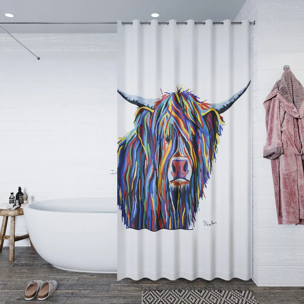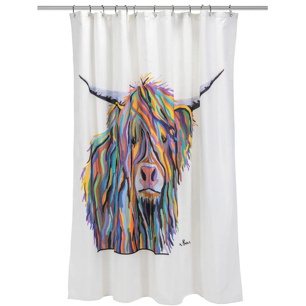 Croydex Colorful Highland Cow 'Angus Mccoo Steven Brown' Polyester Fabric Shower Curtain, 70" X 70" - White