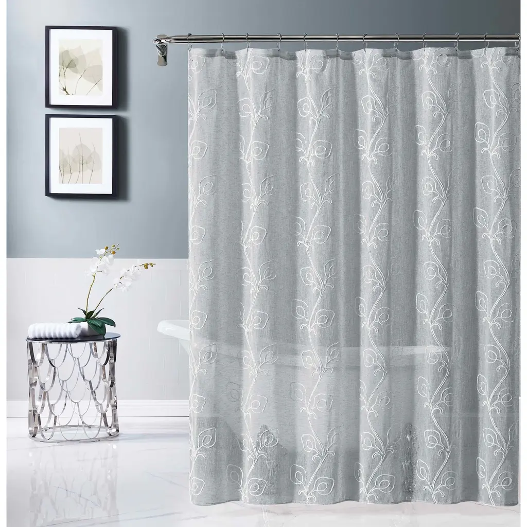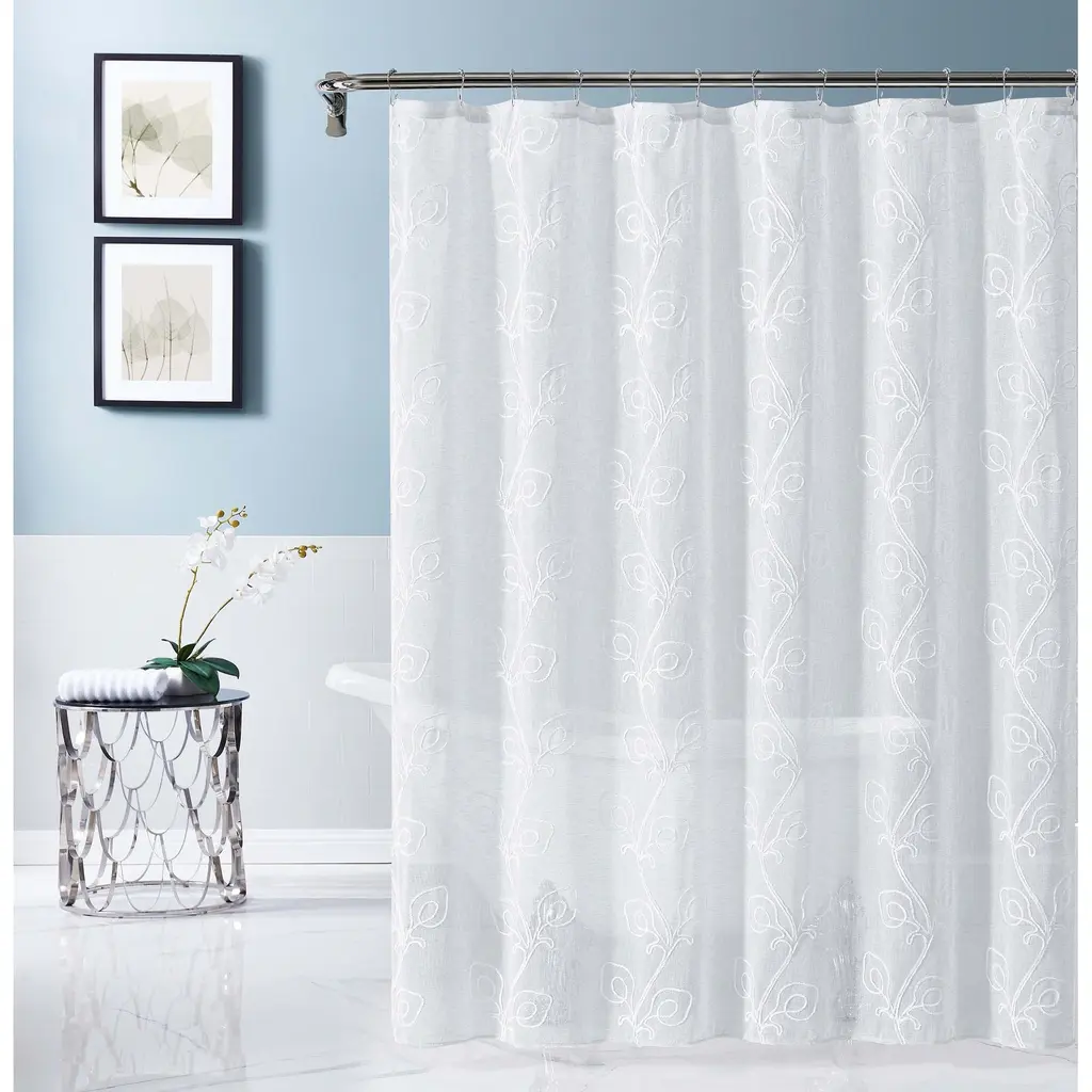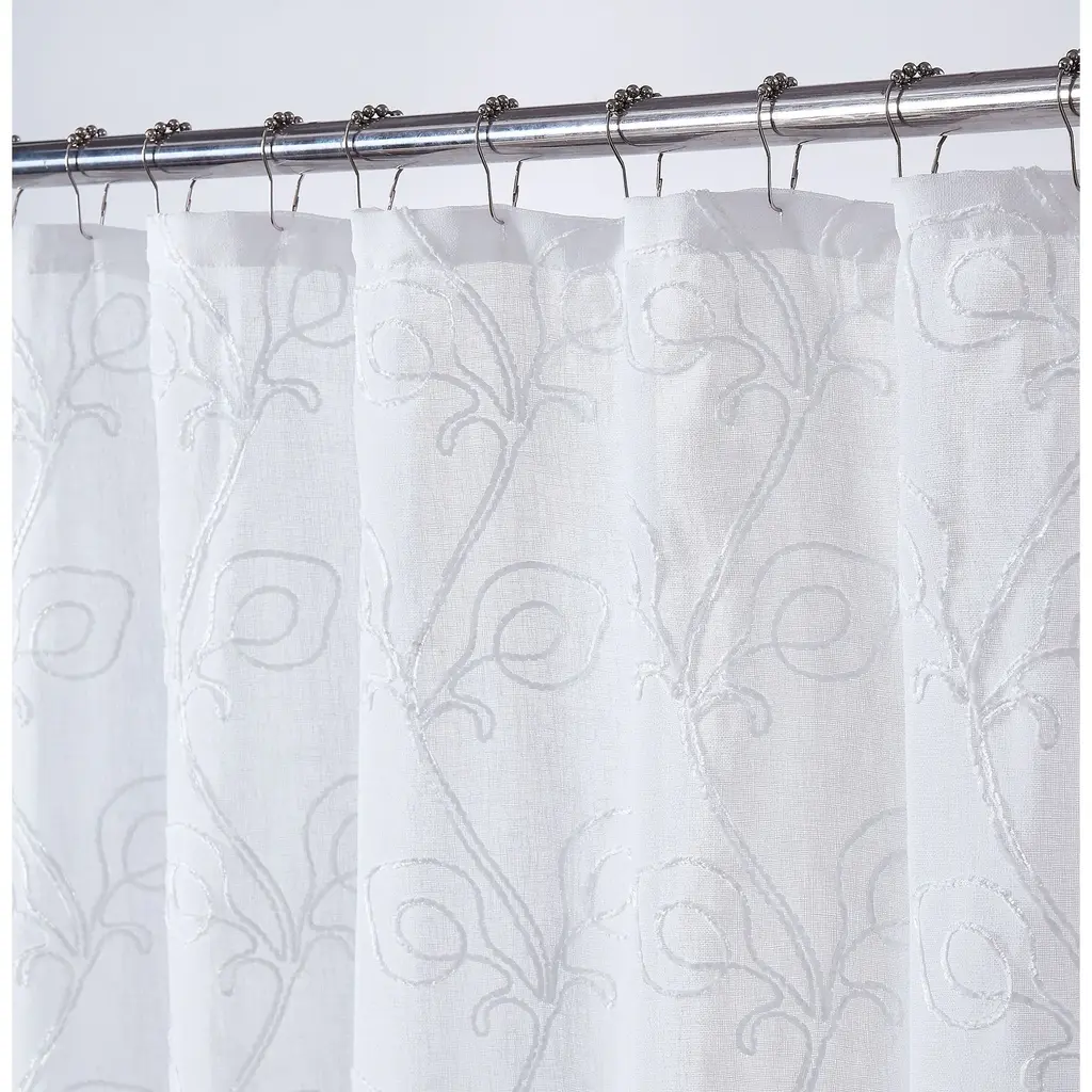 Simple, serene, and sophisticated, the Stella embroidered shower curtain from Dainty Home is a welcome addition to your living space. Perfect for both your master and guest bathrooms, this shower curtain is embroidered with a chenille floral design that blends beautifully with any décor scheme.