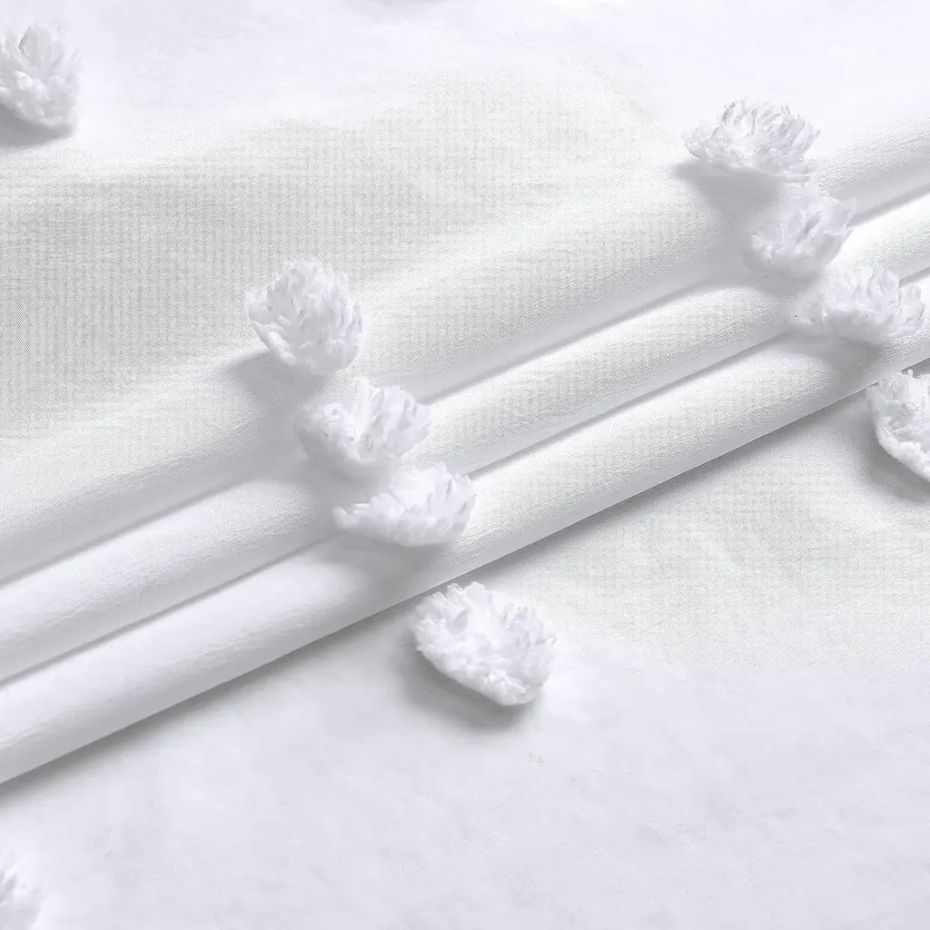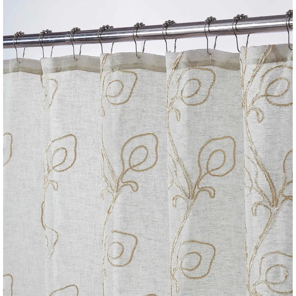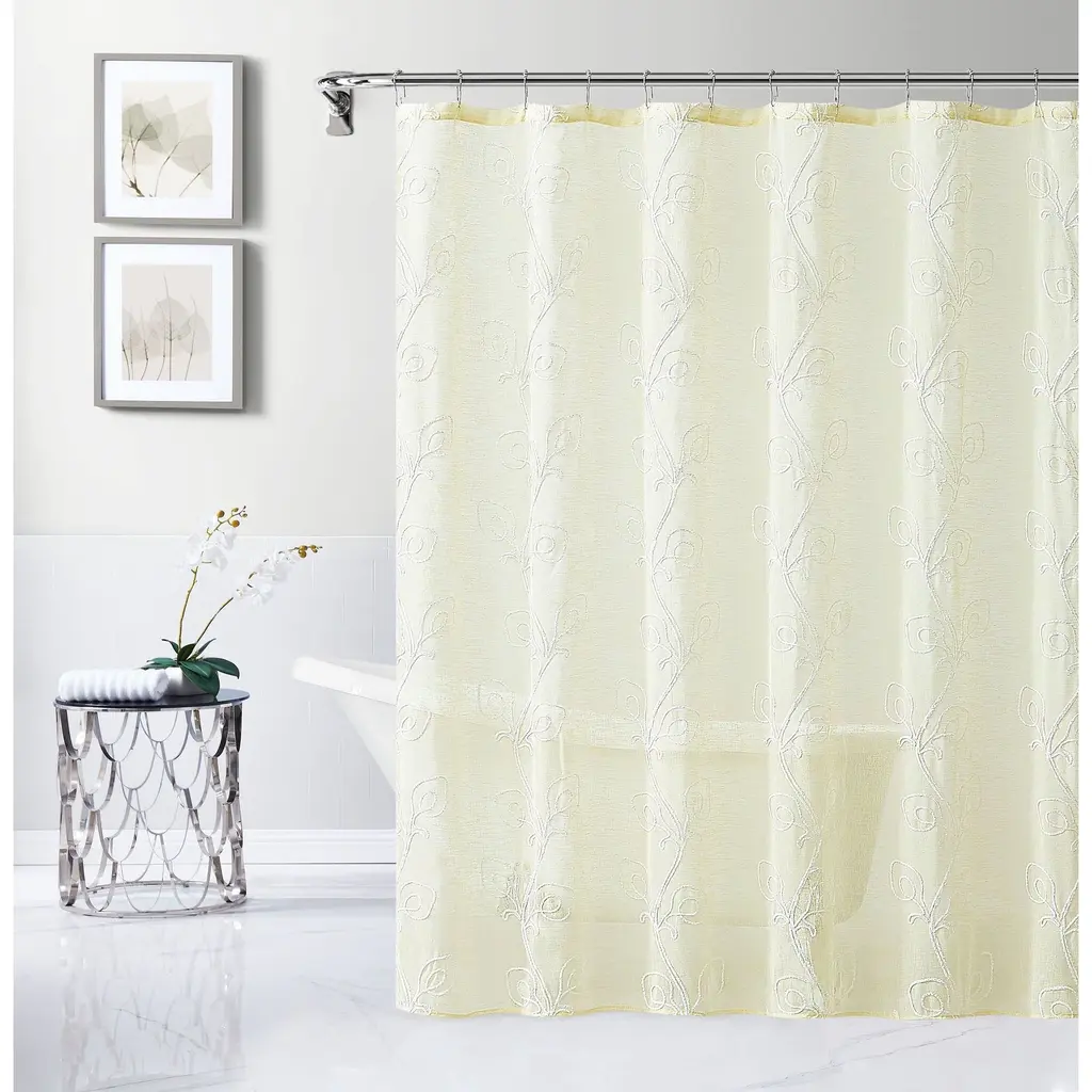 Simple, serene, and sophisticated, the Stella embroidered shower curtain from Dainty Home is a welcome addition to your living space. Perfect for both your master and guest bathrooms, this shower curtain is embroidered with a chenille floral design that blends beautifully with any décor scheme.