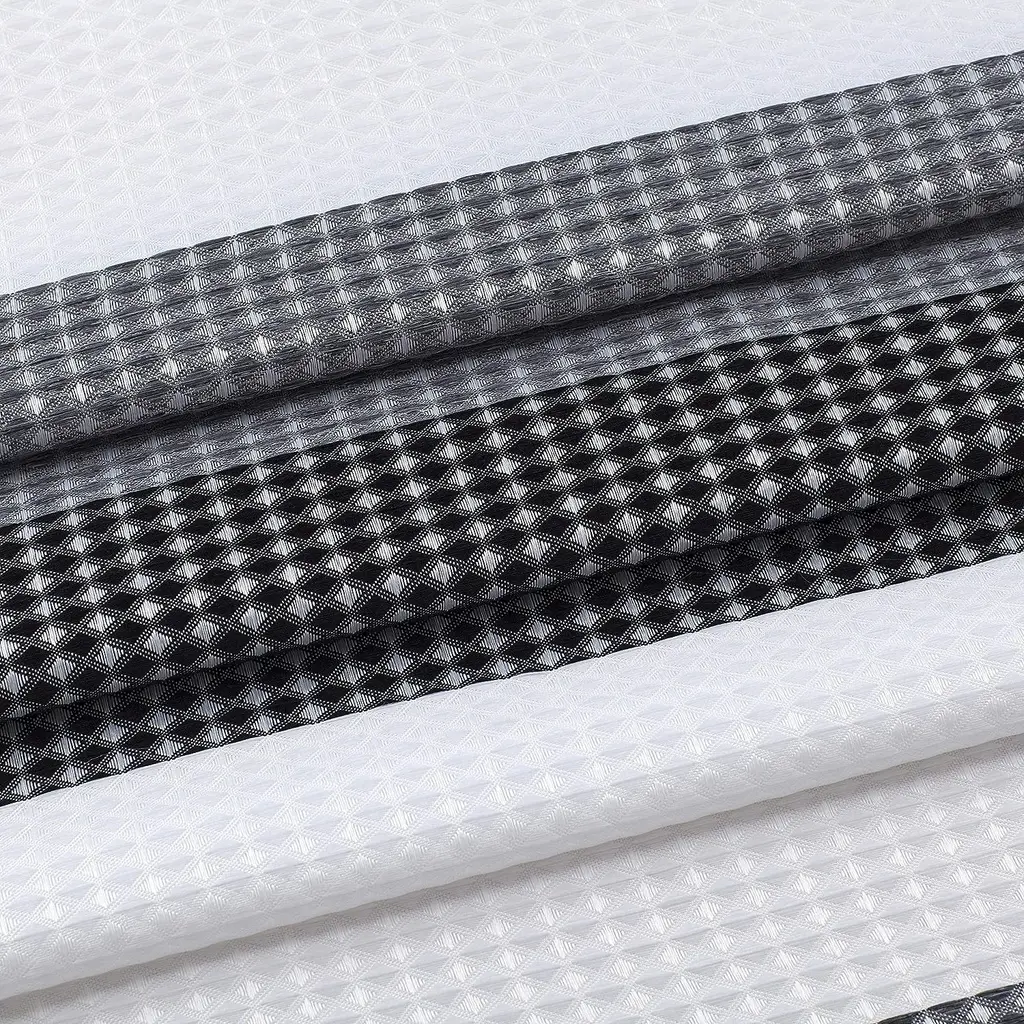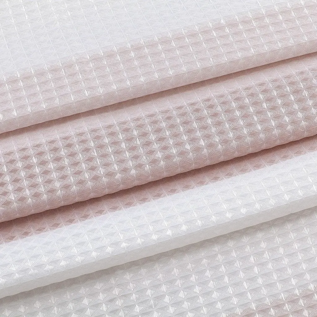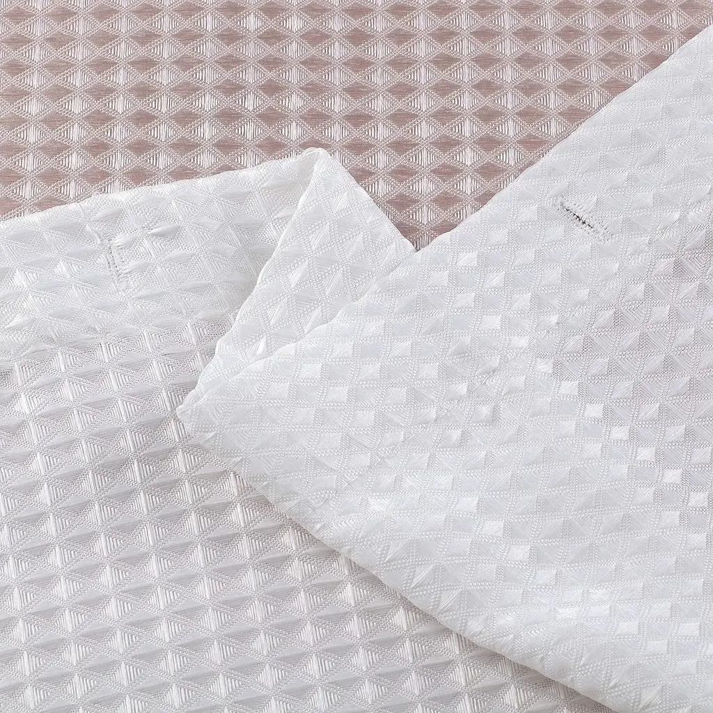 Transform the look and feel of your bathroom with beautiful textured and colorful fabric shower curtains from Dainty Home. Looking for an upscale look to a simple solid - the ombre stripe design adds fashion and style while addressing your shower curtain needs. These curtains feature an attractive woven waffle weave pattern, covering shower and bathtub openings. The classic style adds an upscale look and coordinates nicely with any bathroom decor. The premium quality tight weave of the fabric and specialized construction provides these curtains with a firm, smooth texture that is made to withstand damp, moisture-rich bathroom environments. A cotton-like hand ensures a luxurious feel without holding moisture and odors like Cotton. With the ability to dry quickly, the woven micro-fiber construction is durable yet lightweight and airy enough to allow moisture to flow away without odors forming. They drape beautifully for a clean, fresh look in your bathroom and have a soft hand feel. You are creating your spa-like bathroom oasis with these luxurious honeycomb pattern shower curtains at home or while traveling. Lightweight shower curtains are perfect for any bathroom space in your apartment, camper, campus bathroom, dorm, or weekend beach house. The hotel-style-inspired weave is glamorous in any color or design you choose. Updating your shower curtain is necessary when undertaking a DIY Bathroom update or remodeling. Be sure to coordinate your bath accessories, including shower curtains, bath towels, bath rugs, paint, and more. Going off to college - don't forget your new waffle weave shower curtain by Dainty Home. The waffle weave ombre shower curtain is perfect for adult or children's bathrooms - a unisex ombre stripe is perfect for anyone looking to update their bathroom style.Key Features of Dainty Home Hotel Collection Shower Curtains: Shower Curtain Panel Size: 70 inches wide x 72 inches long (size might vary slightly). Weave Textured Waffle Weave. Pattern: Often used in luxury robes and towels, the waffle pattern creates a textured design on the fabric that looks like a honeycomb in nature. The waffle weave also allows air to flow through the material for quick drying. The surface texture looks like a culinary waffle, hence the name—style: Luxury hotel-inspired style and design. Waterproof: The shower curtain is NOT waterproof. Construction: Machine-woven polyester with waffle weave texture. Origin: China. Care Instructions: Easy-care machine washes in cold water as needed, tumble dry low on cool, and do not bleach.