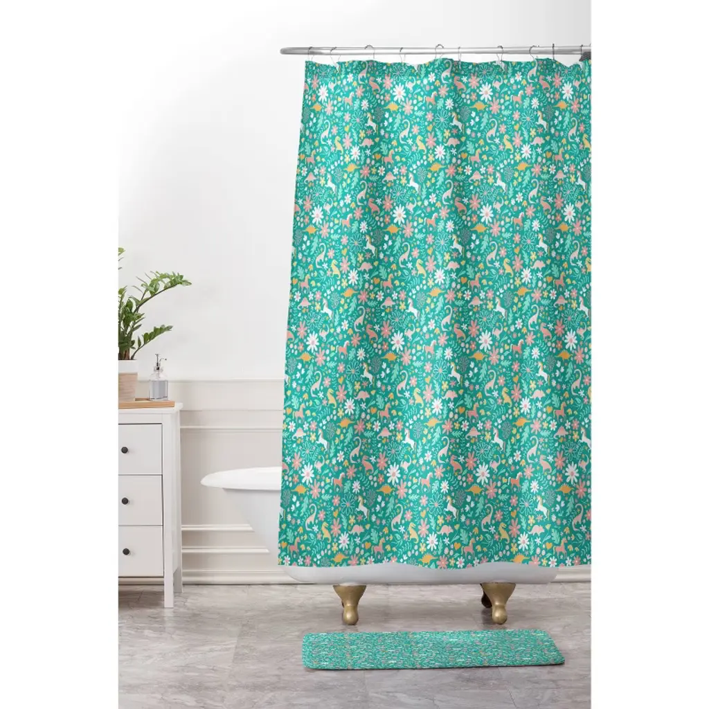 Deny Designs Kids' Lathe And Quill Dinosaurs Unicorns On Teal Shower Curtain