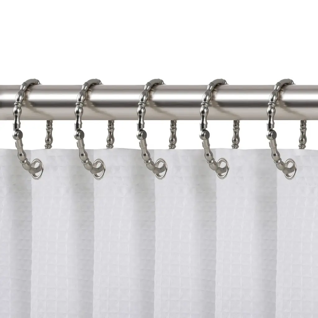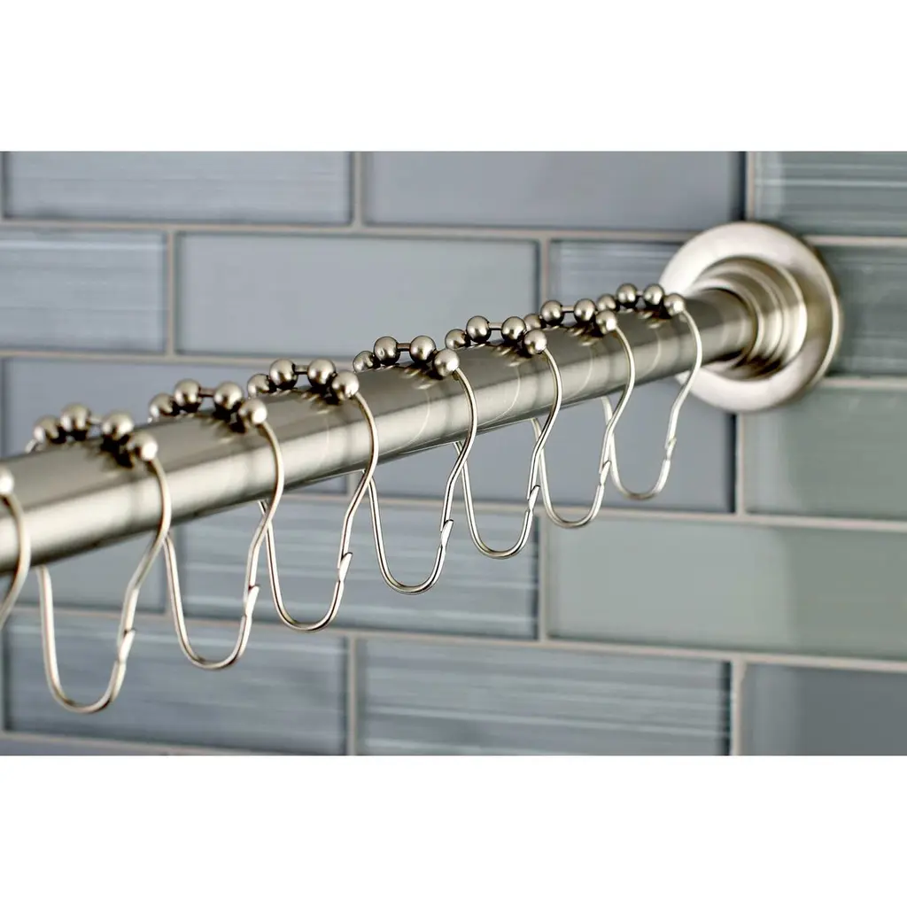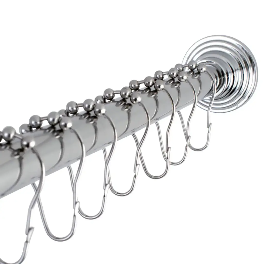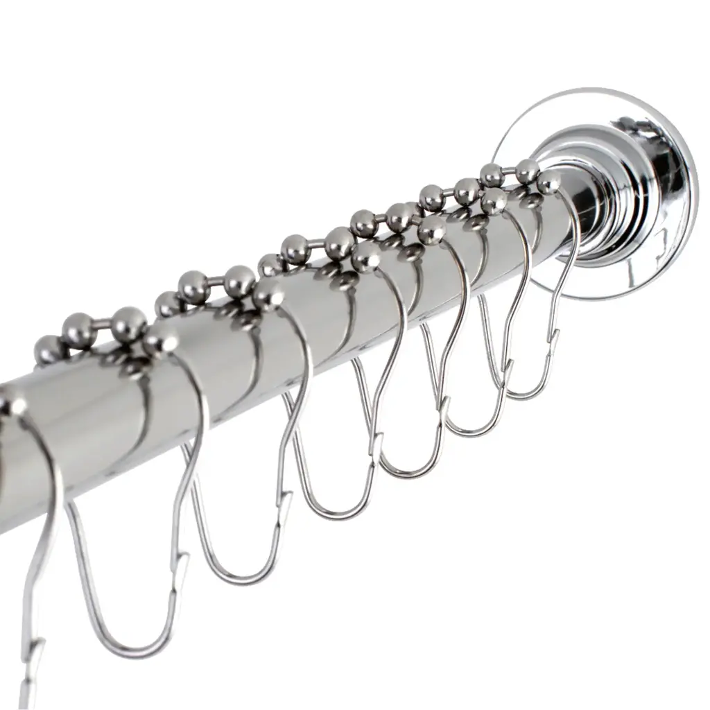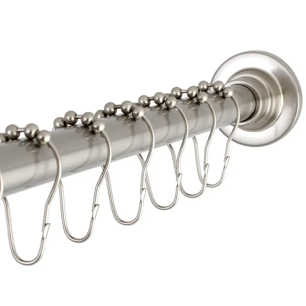 Get all of your shower curtain accessory essentials with the help of this all-inclusive shower curtain rod and rings set. This package includes everything you need to give your shower or bath area that upgraded look with a straight tension shower rod that adjusts from 60-72". The matching roller ball rings easily fit onto most shower curtains and glide open with a light tug.FeaturesItem weight: 1.96 lbs.430 grade stainless steel, zinc alloy and brass constructionShower rod base constructed from solid brass1" (25.4 mm) OD rod fits most hooksShower rod adjusts from 60" to 72" (1524 mm to 1828.8 mm)Flanges cover 2-11/16" (68.33 mm) diameter at wallOverall dimension: (L)72" (1828.8 mm) x (H)2-11/16" (68.33 mm)Includes a twist and lock tension shower rod and a 12 pc/set shower curtain roller ball ringsCoordinates perfectly with Edenscape collectionProp 65 disclaimerWARNING: This product can expose you to chemicals, including lead which is known to the State of California to cause cancer or birth defects or other reproductive harm, for more information, go to www.p65warnings.ca.gov