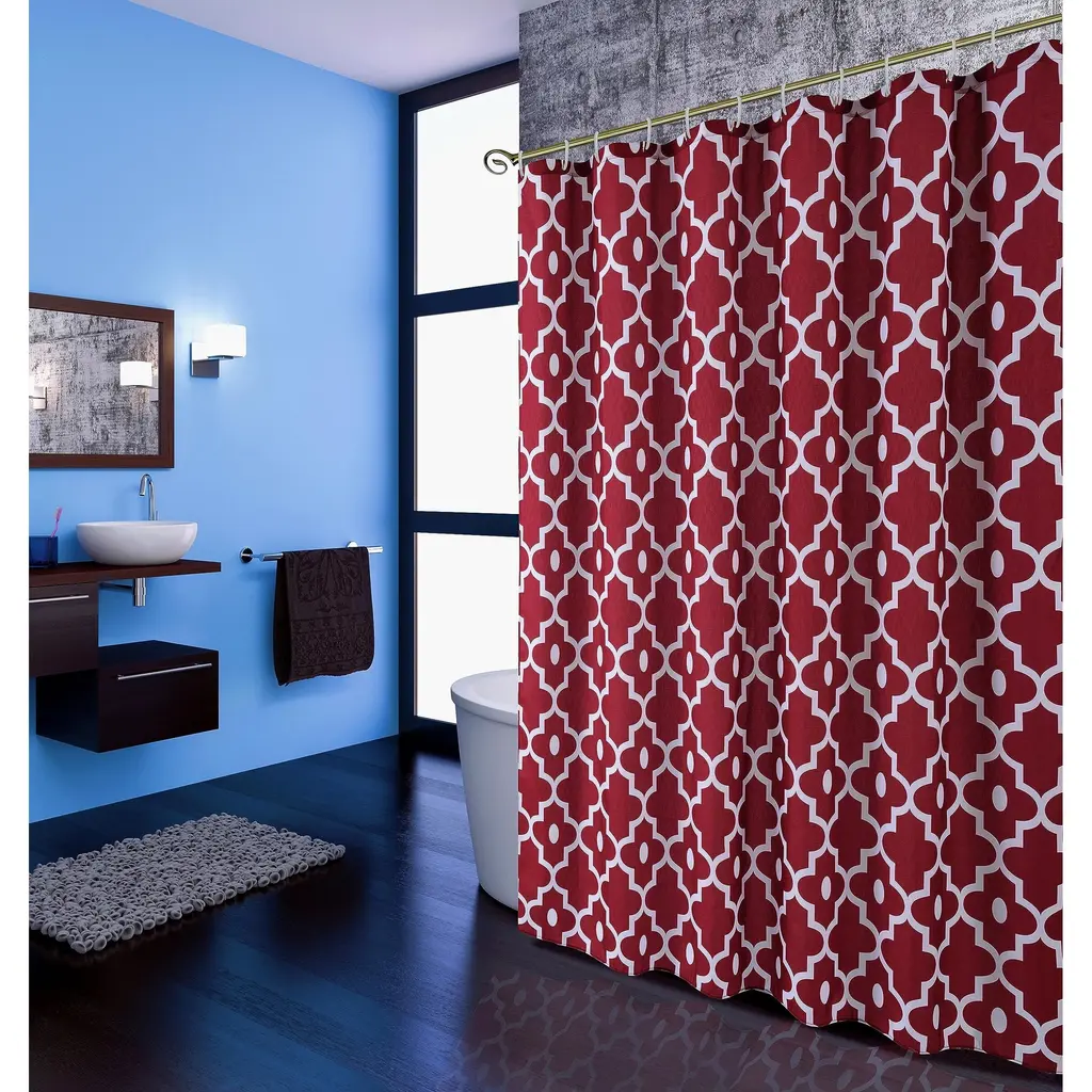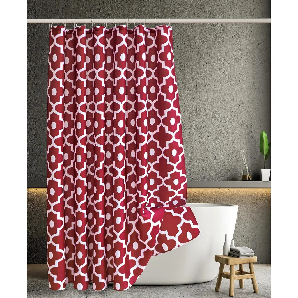 Fabric Shower Curtains 72" X 72", Burgundy Morocco Pearl Printed - Multi