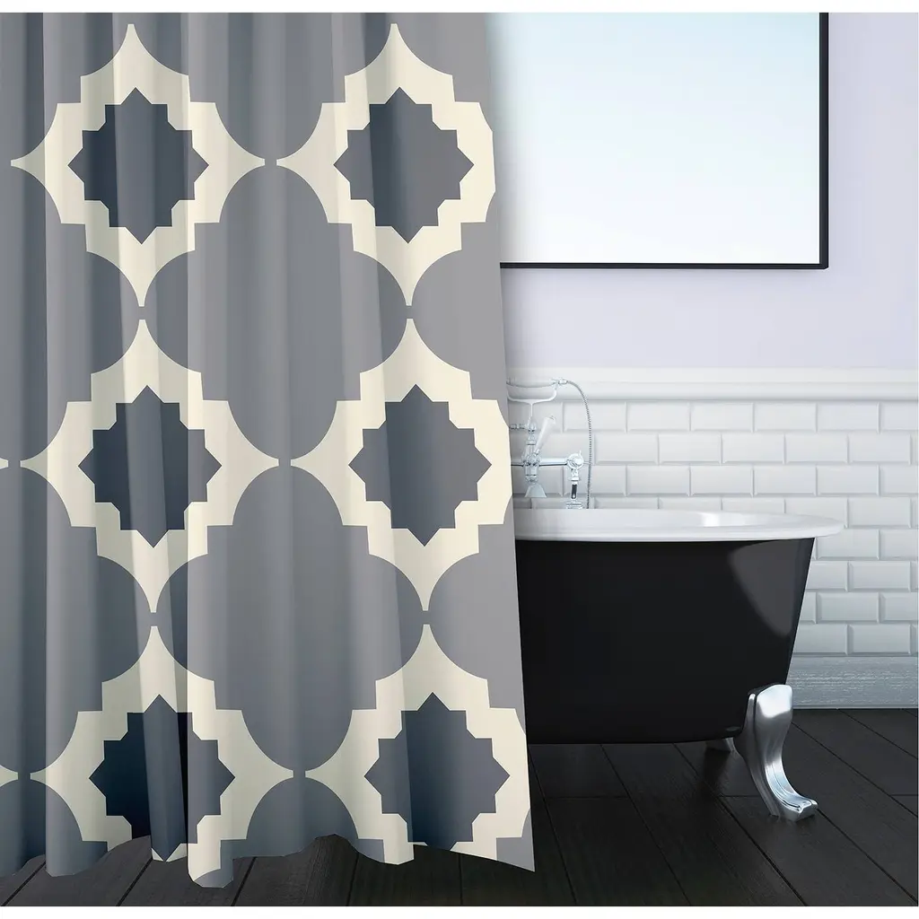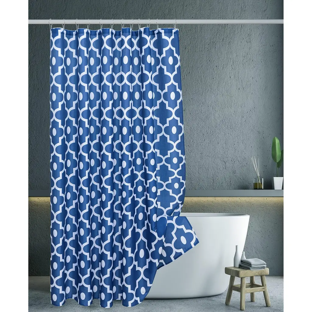 Fabric Shower Curtains 72" X 72", Indigo Morocco Pearl Printed - Multi