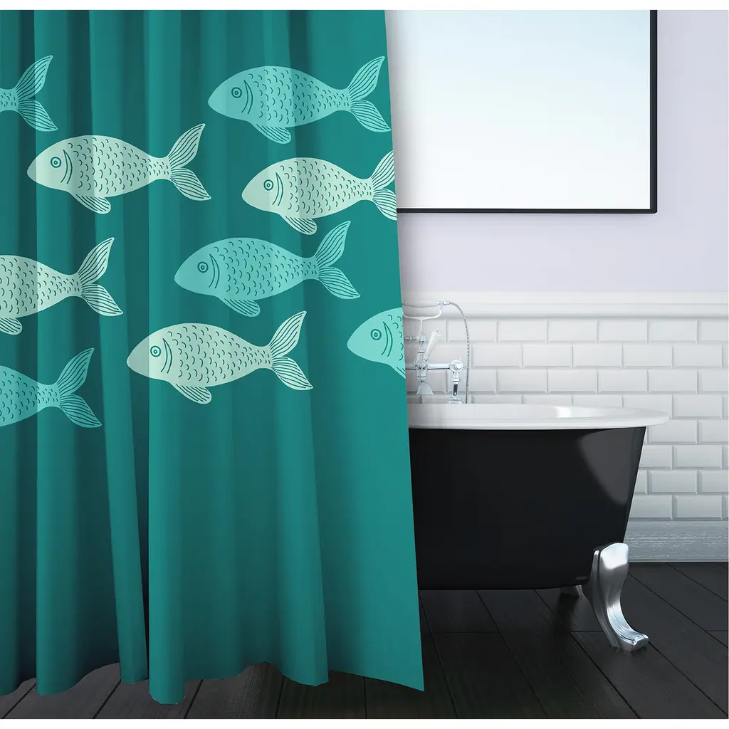 Fish Line Animal Print Print Print Shower Curtain - Green