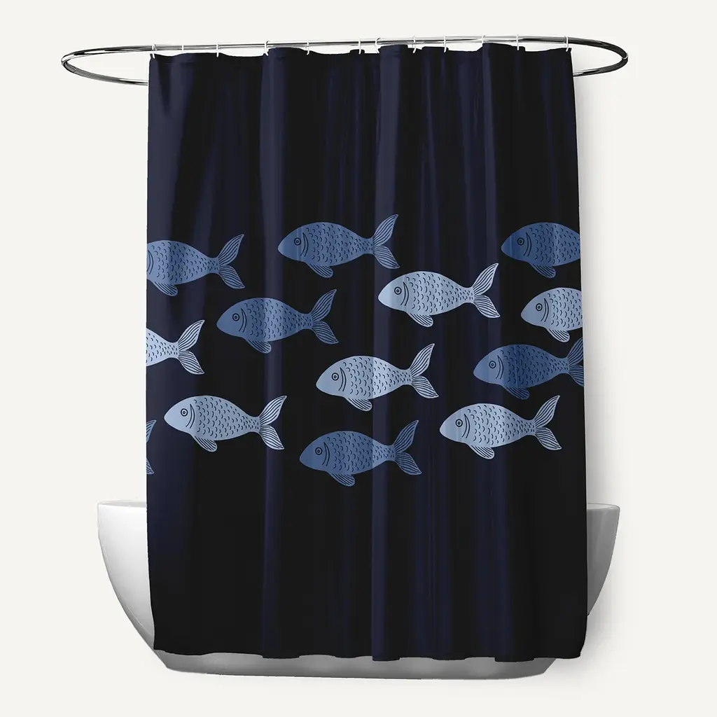 With the combination of sunny colors and beach style, you will love the Green Fish Line shower curtain from our Beach Vacation Collection. Your bath décor will be enlivened with this shower curtain's coastal vibe! This and all designs from our Beach Vacation Collection will bring waves of joy to your home decor.Features:Durable Polyester FabricQuick DryingMachine Washable71" x 74"12 Button Holes for hook placementPattern: Animal Print PrintStyle: Nautical & CoastalColor Choices: Green, Navy, Orange, Purple