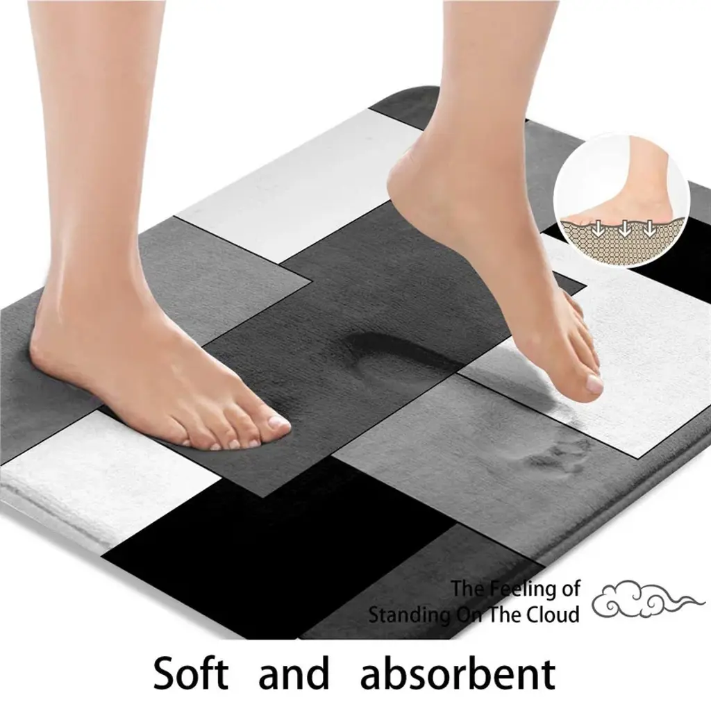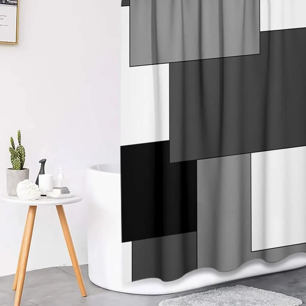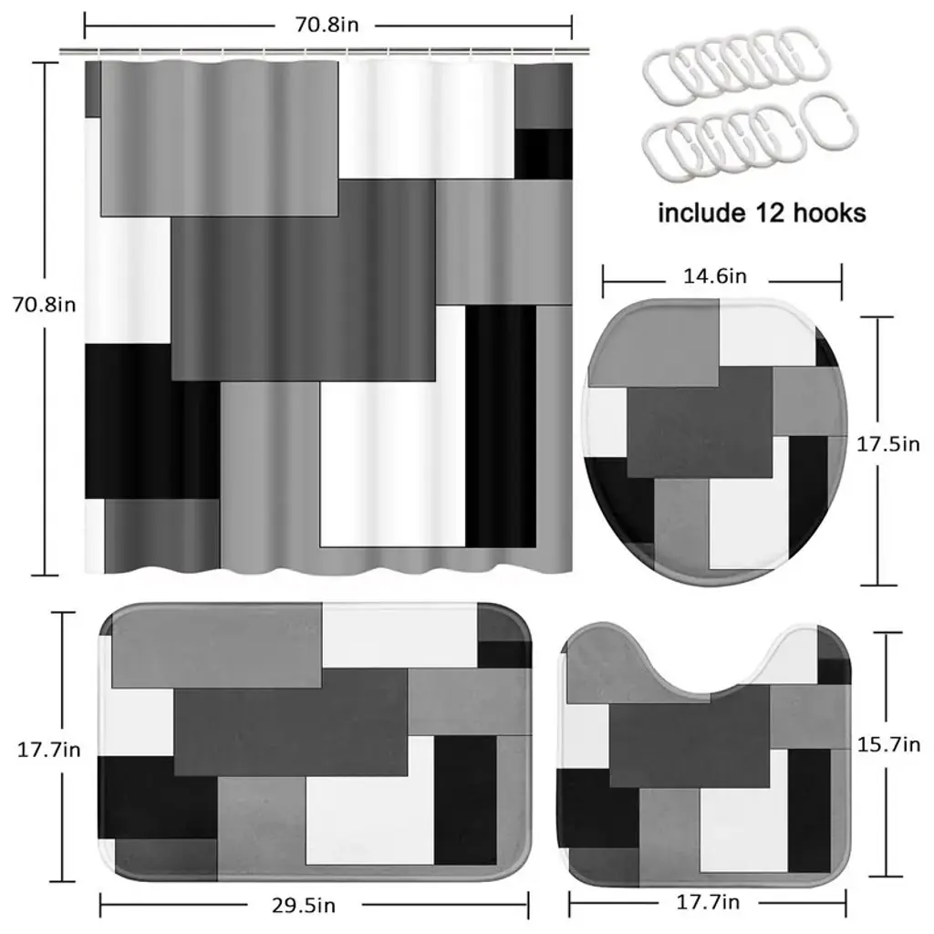 Geometric Shower Curtain Set With Toilet Lid Cover And Non Slip Rugs - Abstract Geometric Grey