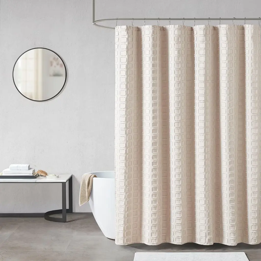 Gracie Mills Erwin Modern Woven Square Clipped Solid Shower Curtain - One Size - Sand