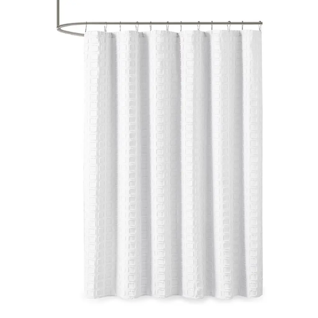 Add to your bathroom with our "Textured Elegance" Woven Clipped Solid Shower Curtain. The intricately woven fabric with clipped detailing adds a touch of sophistication to your space. Elevate your daily routine with this chic and understated addition, seamlessly blending style and simplicity.