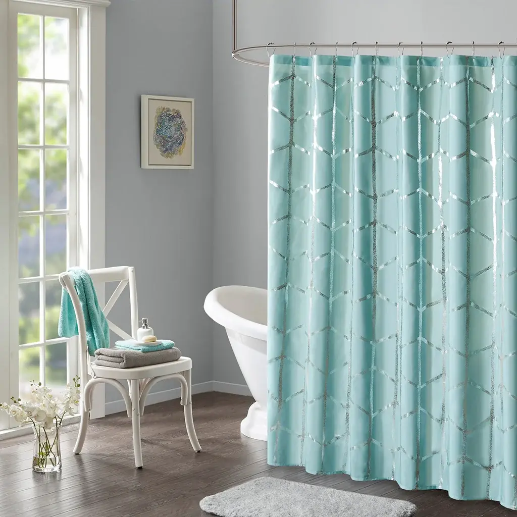Gracie Mills Isabelle Geometric Metallic Lightweight Shower Curtain - One Size - Aqua/silver