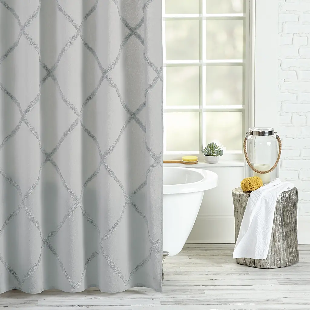 Elevate your bathroom with our "Glimmering Prints" Metallic Shower Curtain. The printed metallic design adds a touch of modern elegance to your space. Enhance your daily routine with this chic and contemporary addition, seamlessly blending style and functionality.
