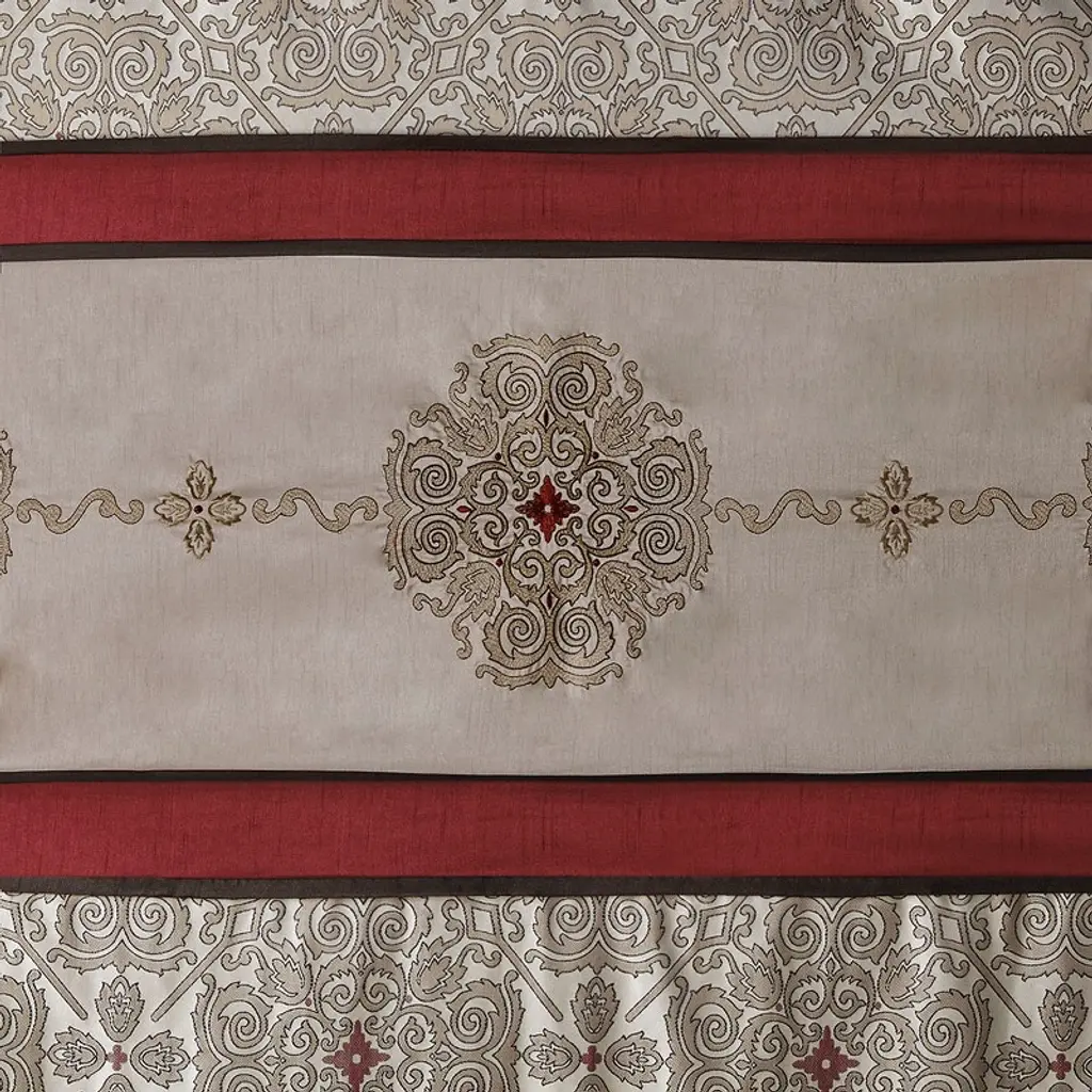 Gracie Mills Kurtis Medallion Jacquard Embroidered Shower Curtain - One Size - Red