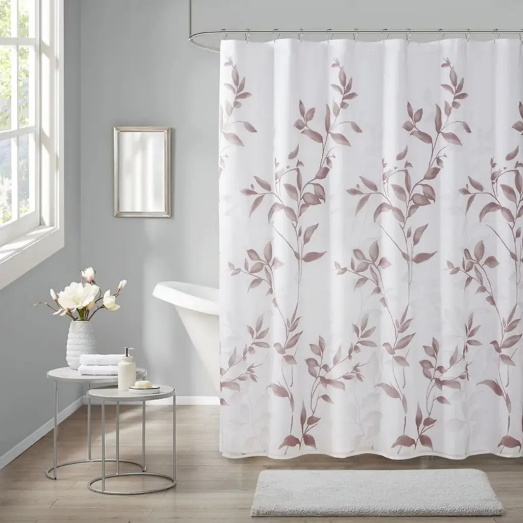 Gracie Mills Patton Modern Lightweight Botanical Burnout Shower Curtain - One Size - Mauve