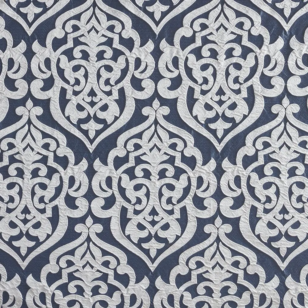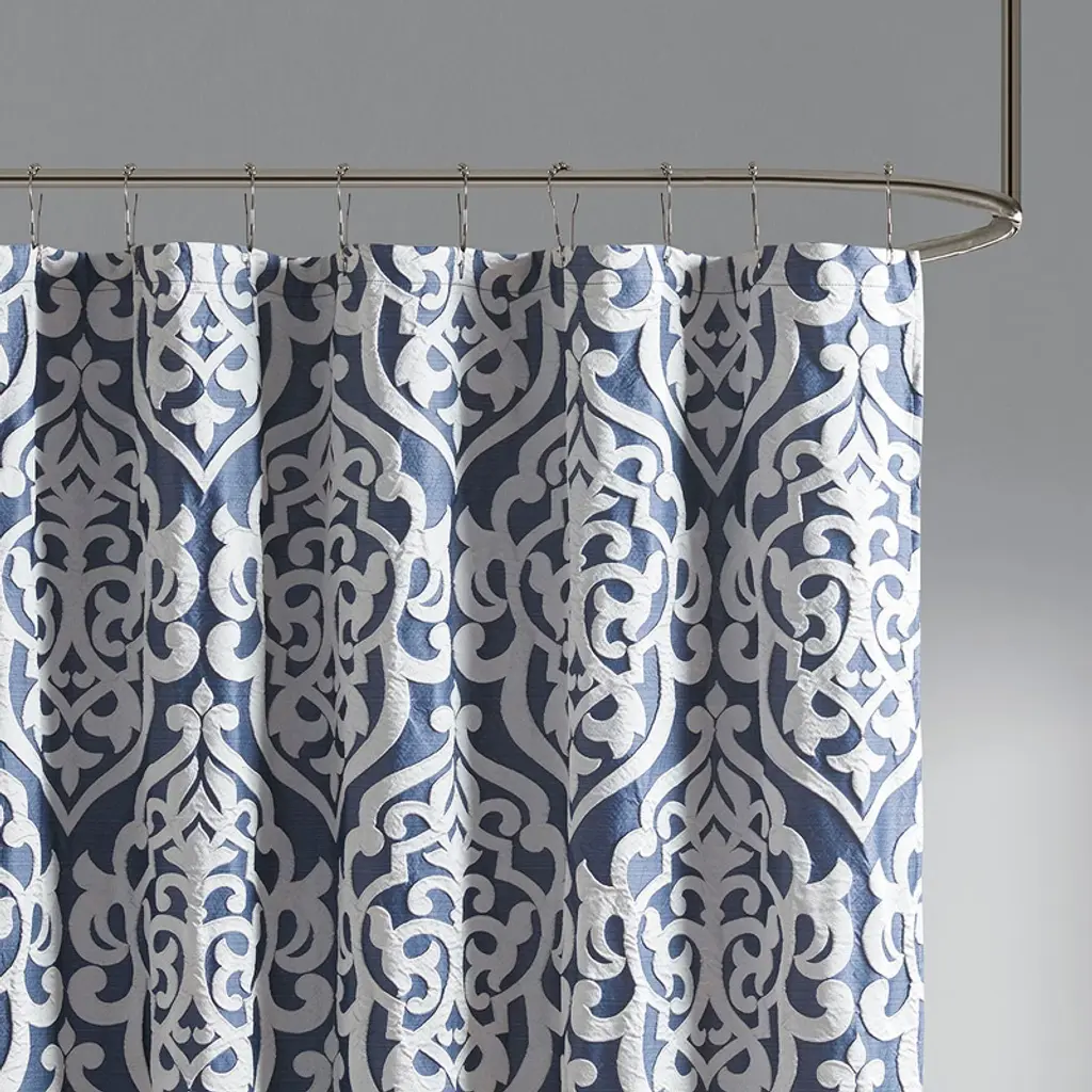 Gracie Mills Pineda Damask Jacquard Shower Curtain - One Size - Navy/silver