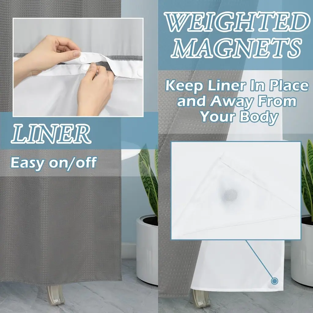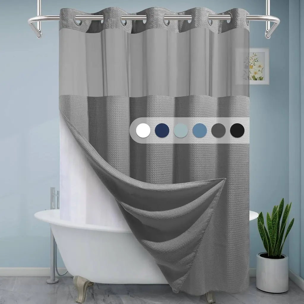 Gray Waffle Weave Shower Curtain & Liner Set, 71W x 74H Inches