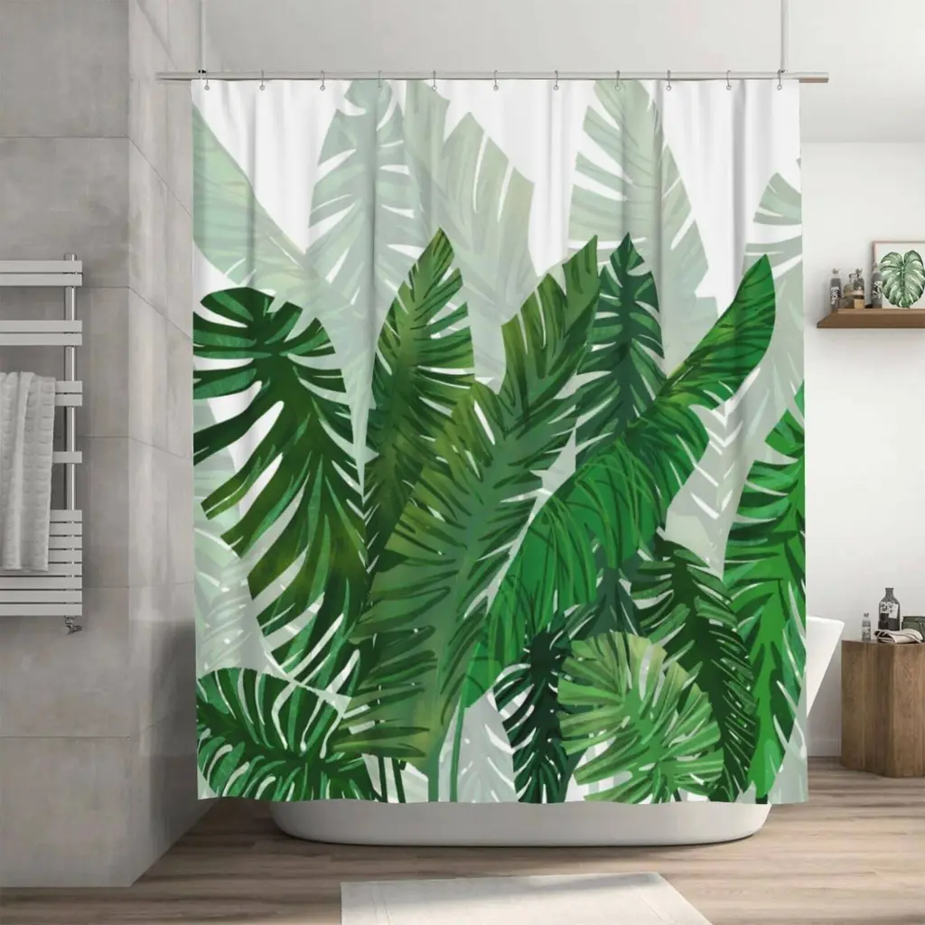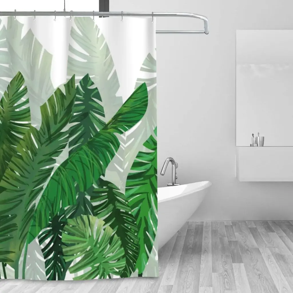Green Plant Shower Curtain, Waterproof Washable Fabric 72 X 72 Inches - Multi