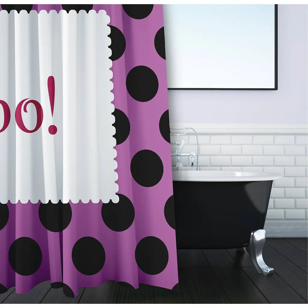 Create a festive and fun atmosphere in your home this Halloween season with our Halloween Boo Dots Shower Curtain from the Witches Brew Collection. This durable and decorative polyester fabric shower curtain has a single sided design and a buttonhole top to easily refresh your bath for each season. It is made of 100% polyester that is quick drying. When it needs to be washed, just toss it into your washing machine, and then tumble dry. You will love the fun and style brought to your bath space by this decorative shower curtain! The quirky designs in this collection are the perfect way to enhance your fall decor and to bring a smile to all who encounter them.
