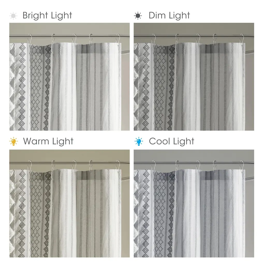 Ink+ivy Imani Cotton Printed Shower Curtain With Chenille - Gray