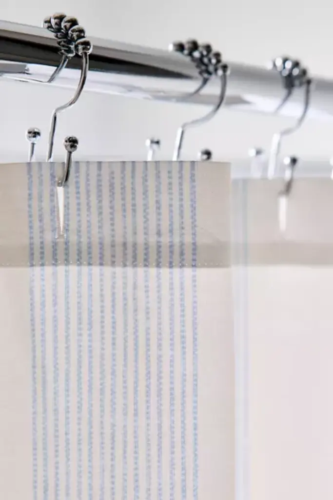 Bring timeless appeal into your space with this fabric shower curtain with allover striped motifs. Printed on crisp polyester with perforations along the top edge for easy setup. **Features** \- Ivy stripes fabric shower curtain \- Finished with stripes printed allover the front \- Ready for hanging with 12 enforced buttonholes at the top edge \- Recommended for use with shower liner **Content + Care** \- Shower curtain hooks and liner sold separately \- 100% Polyester, 150 gsm \- Machine wash \- Imported **Size** \- Dimensions: 74"l x 71"w