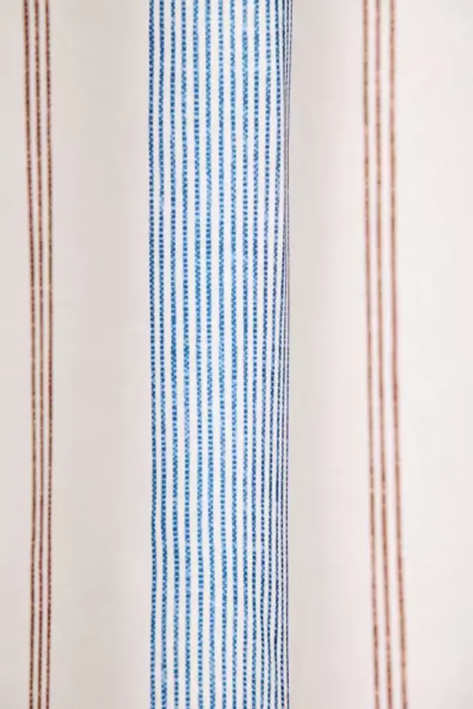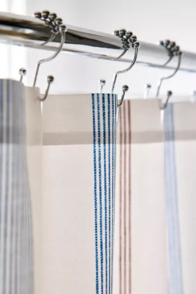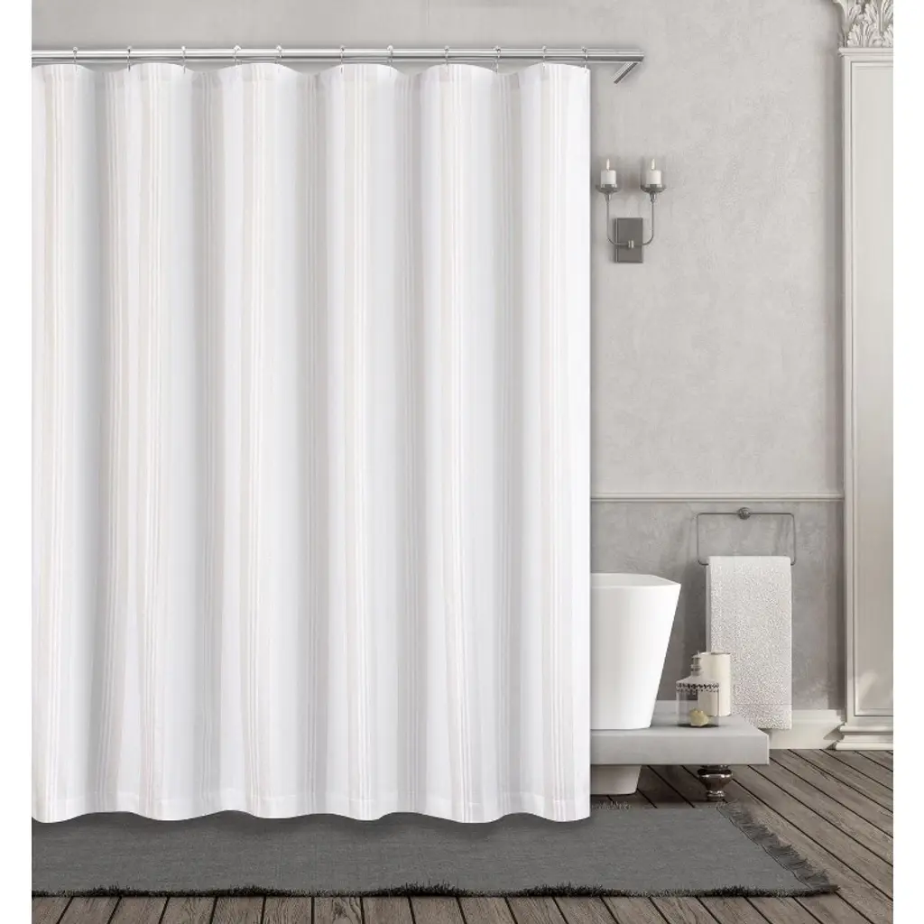 Bring timeless appeal into your space with this fabric shower curtain with allover striped motifs. Printed on crisp polyester with perforations along the top edge for easy setup. **Features** \- Ivy stripes fabric shower curtain \- Finished with stripes printed allover the front \- Ready for hanging with 12 enforced buttonholes at the top edge \- Recommended for use with shower liner **Content + Care** \- Shower curtain hooks and liner sold separately \- 100% Polyester, 150 gsm \- Machine wash \- Imported **Size** \- Dimensions: 74"l x 71"w