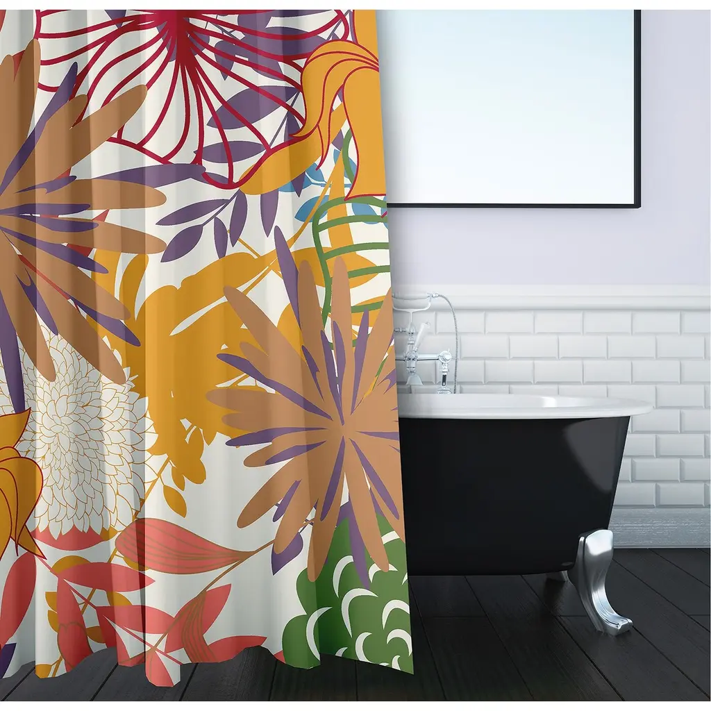 Change up your home decor for the fall season with the Jumble Floral Shower Curtain from our Flipping for Fall Collection. This durable and decorative polyester fabric shower curtain has a single sided design and a buttonhole top to easily refresh your bath for each season. It is made of 100% polyester that is quick drying. When it needs to be washed, just toss it into your washing machine, and then tumble dry. Everyone will enjoy the earthy aesthetics brought to your bath space by this decorative shower curtain! The warm tones of this collection will envelop you in comfort and delight you throughout the season.