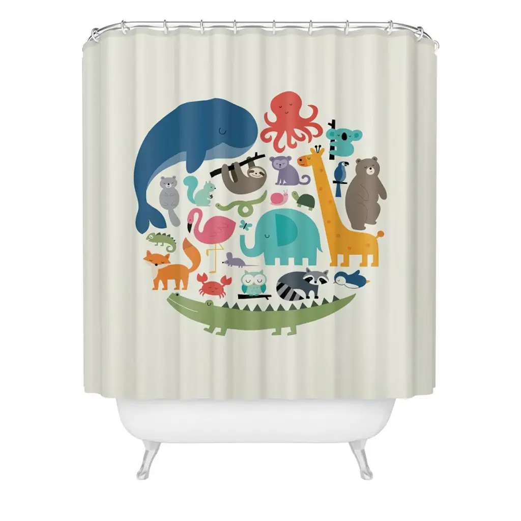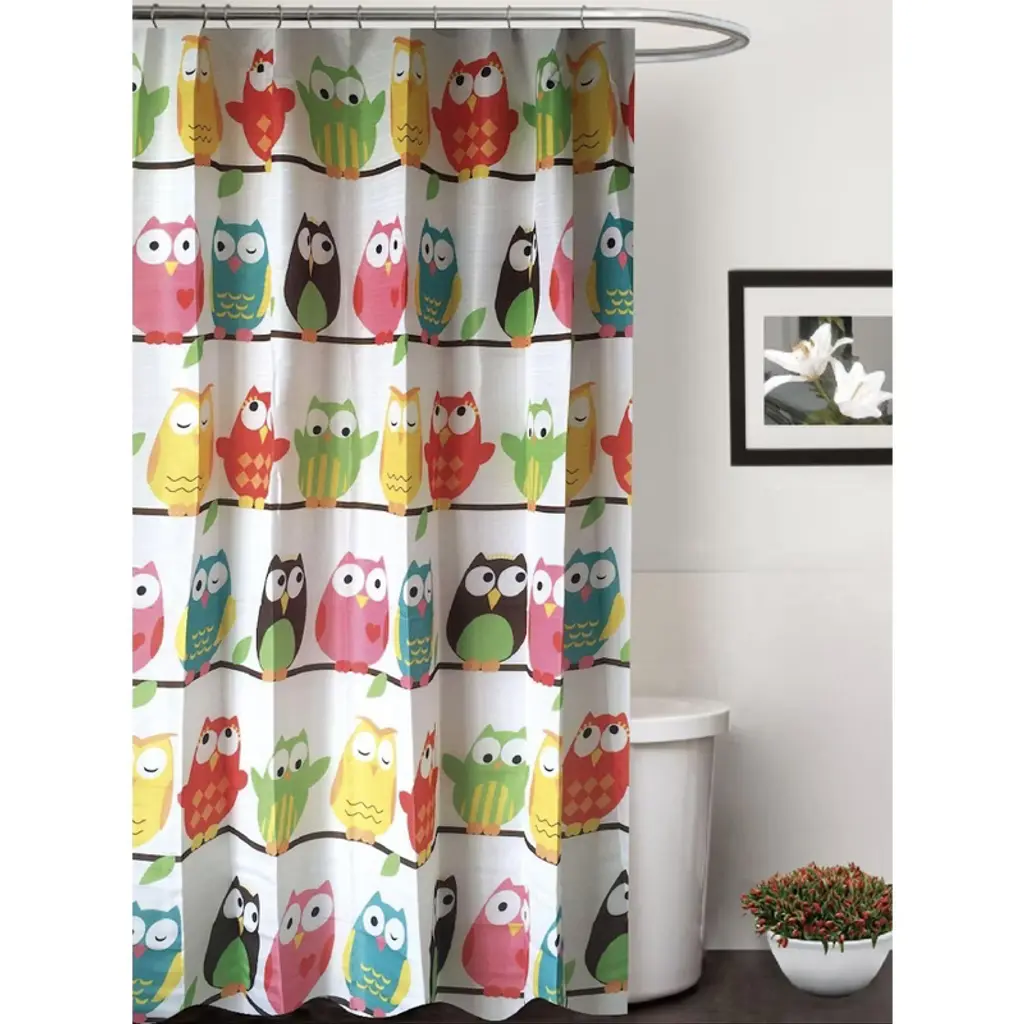 Add a whimsical and cheerful touch to your bathroom with the Kate Aurora Kids Owls Novelty Fabric Shower Curtain. Designed to delight, this playful curtain features a charming pattern of colorful owls perched on branches, bringing a fun and lighthearted feel to any bath space. Perfect for children’s bathrooms, guest baths, or anyone who loves nature-inspired designs with a pop of personality. Crafted from premium-quality, durable polyester fabric, this shower curtain offers both style and function. It measures 70 inches wide by 72 inches long, fitting most standard bathtubs and shower stalls with ease. The soft-touch fabric is water-repellent and quick-drying, helping to keep your bathroom dry and fresh without the need for a separate liner. The curtain includes reinforced top header and rust-resistant metal grommets, making it easy to hang on any standard curtain rod and ensuring long-lasting durability. Whether you're redecorating a child's bathroom or simply want to brighten up your space, the vivid owl motif brings charm and joy to your daily routine. Machine washable for effortless care, this shower curtain combines convenience with a delightful design that's sure to make a statement. Pair it with coordinating bath rugs, towels, or wall art to complete the look and create a cohesive woodland-themed bathroom setup. Transform your bathroom into a cozy, inviting space with the Kate Aurora Kids Owls Novelty Fabric Shower Curtain—a perfect blend of fun, function, and family-friendly style.