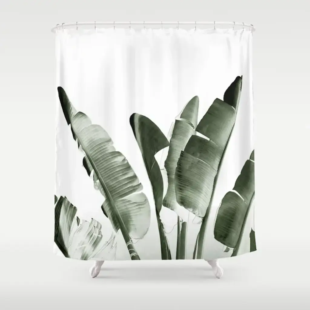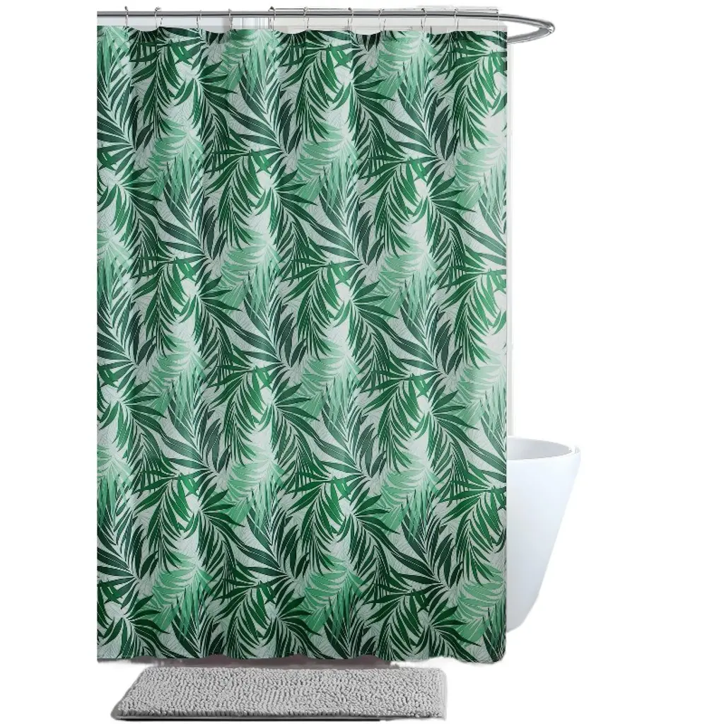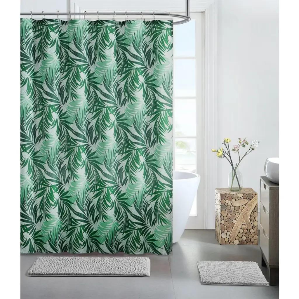 Bring the vibrant energy of a coastal getaway into your bathroom with the Kate Aurora South Beach Tropical Fabric Shower Curtain. Designed to capture the spirit of sun, surf, and lush tropical foliage, this fabric shower curtain instantly brightens your space with its playful yet sophisticated design. Featuring bold palm leaves and vivid color tones inspired by Miami’s iconic art deco aesthetic, it transforms your daily routine into a mini retreat. Crafted from high-quality, durable fabric, this standard-size curtain offers full coverage for most showers and tubs while remaining lightweight and easy to hang. Its soft texture adds a touch of luxury, while the vivid tropical print injects a refreshing burst of color into any bathroom setting. Whether you're updating your beach house bathroom or just want to bring summer vibes year-round, this shower curtain is a stylish and functional choice. Built to withstand daily moisture and use, the Kate Aurora South Beach curtain is machine washable, making it easy to keep fresh and looking its best. The reinforced buttonhole openings along the top provide compatibility with most standard shower hooks or rings (not included), ensuring simple installation and a secure hang. Whether you’re going for a laid-back island theme or a bold, modern refresh, this tropical shower curtain delivers both flair and practicality. Create your own oasis with the Kate Aurora South Beach Tropical Fabric Shower Curtain and let your bathroom become a bright, breezy escape.