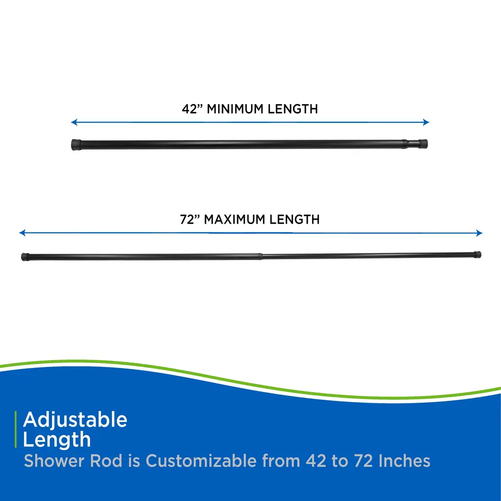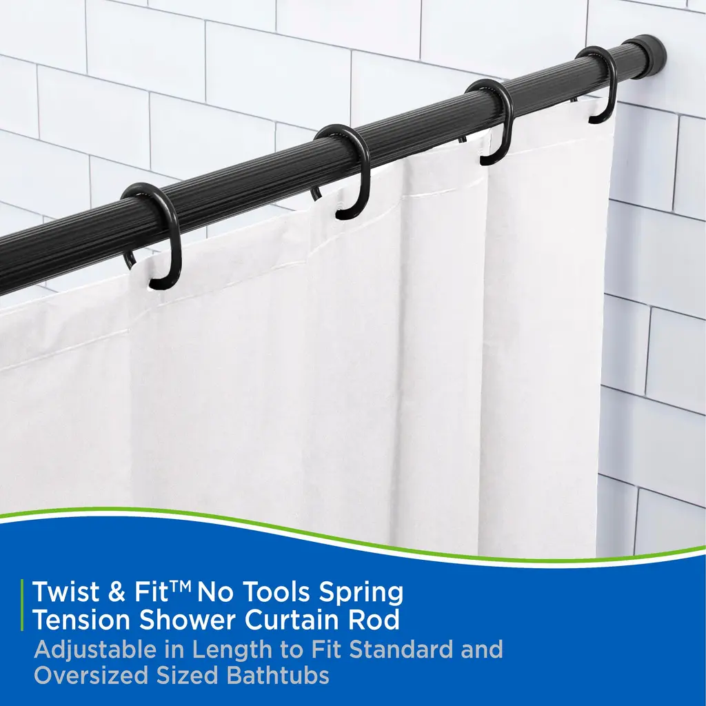 Kenney Twist & Fit No Tools Spring Tension Shower Curtain Rod, 42-72" - Black