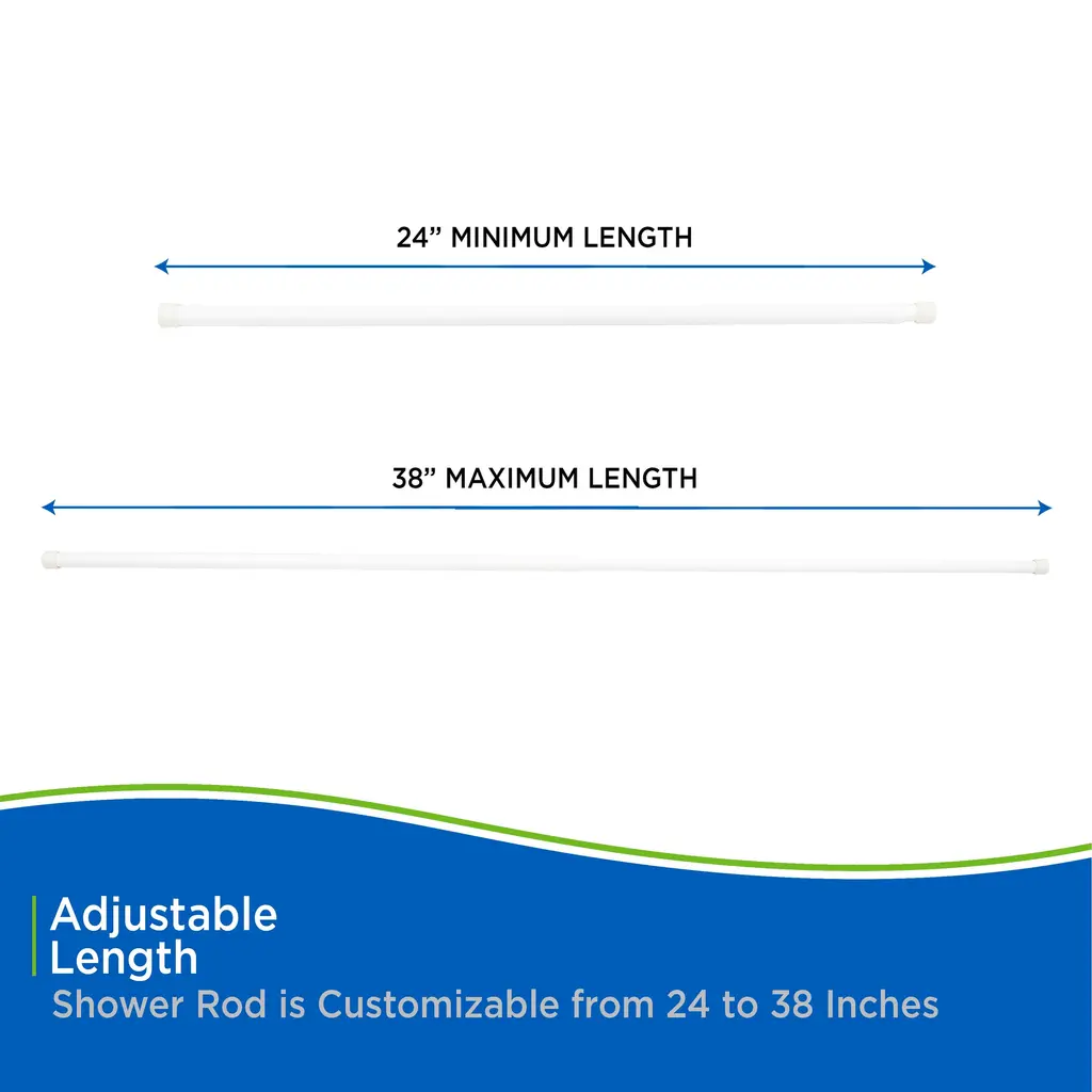 Kenney Twist & Fit No Tools Spring Tension Stall Shower Curtain Rod, 24-38" - White