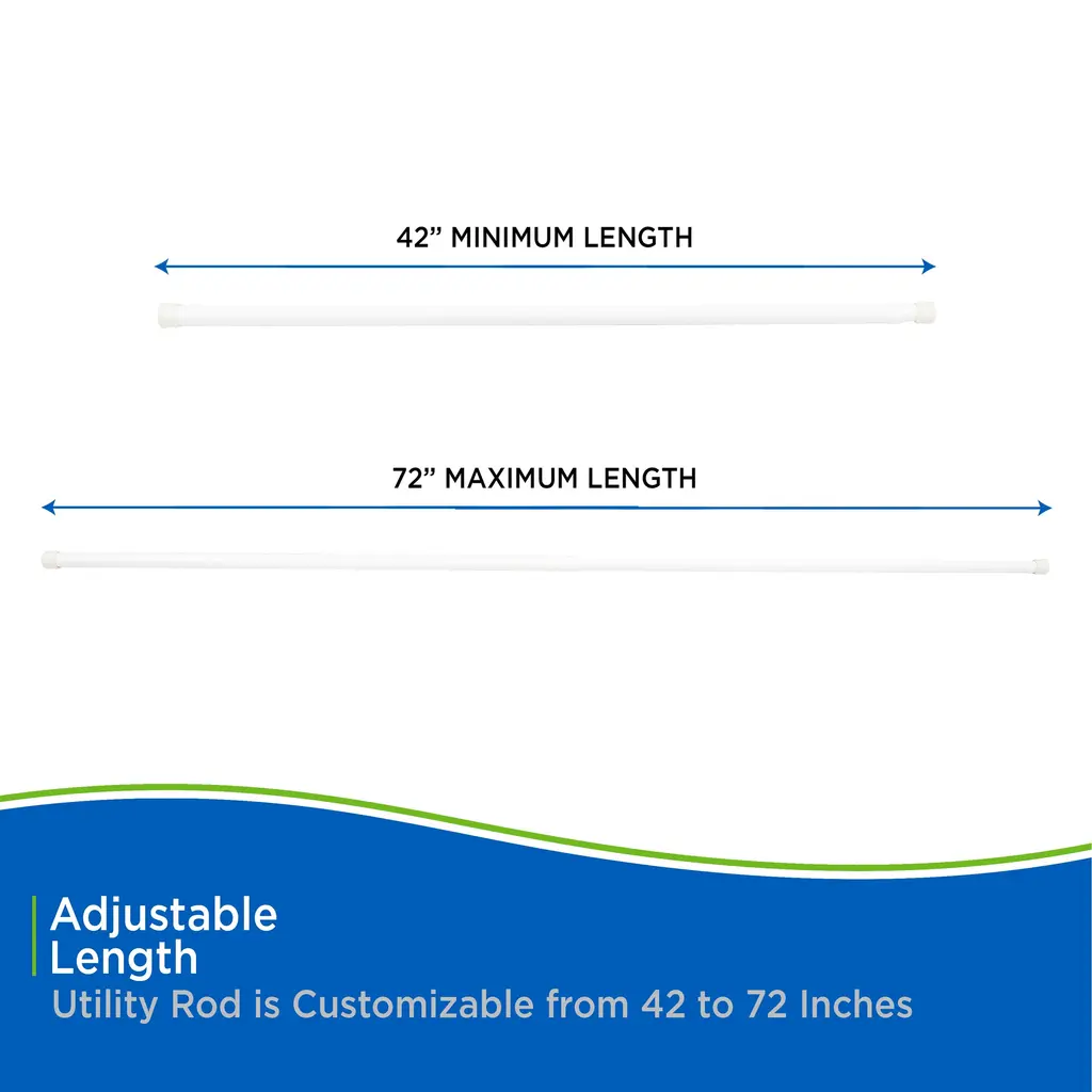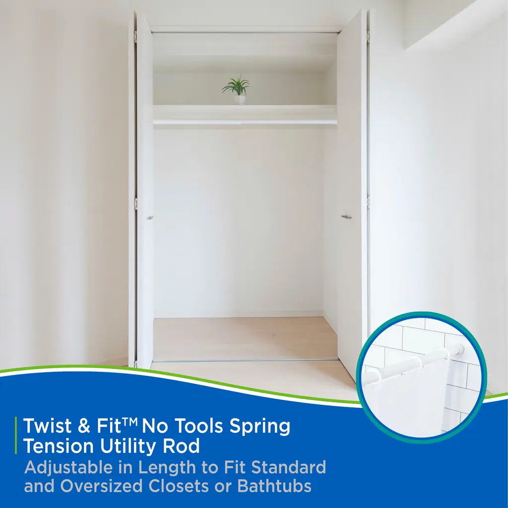 Kenney Twist & Fit No Tools Spring Tension Utility Closet Or Shower Curtain Rod, 42-72" - White