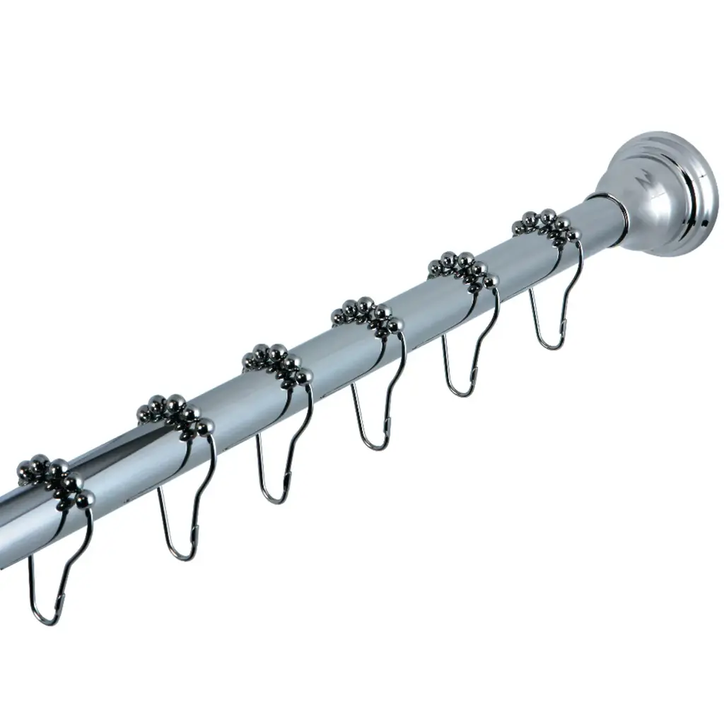 Get all of your shower curtain accessory essentials with the help of this all-inclusive shower curtain rod and rings set. This package includes everything you need to give your shower or bath area that upgraded look with a straight shower rod that adjusts from 38-60". The matching roller ball rings easily fit onto most shower curtains and glide open with a light tug.FeaturesConstructed from high quality stainless steel, brass, and zinc alloy1" O.D. diameter tubeShower rod adjusts from 38" to 60"Flanges cover 2-5/8" diameter to wallCoordinates perfectly with Edenscape collectionCorrosion-resistant finishDesigned for a long-lasting performance