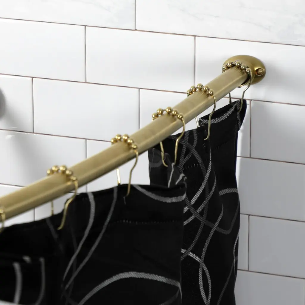 Add a fresh new look to your bathroom with a brushed brass shower curtain rod. A quick and simple installation along with a secure hold is provided by the rod's tension design. Complete your traditional bathroom today with this accessory.FeaturesSolid zinc alloy base constructionStainless steel construction curtain rod with a premium color finish resists tarnishing and corrosion for long-lasting durabilityAdjustable curved design extends from 47 to 60-in to fit most standard bath enclosures1 in. diameter shower rodRod may be shorten by cutting equal amounts from each endEasy installation for added convenienceUses mounting screws for installationMounting hardware included