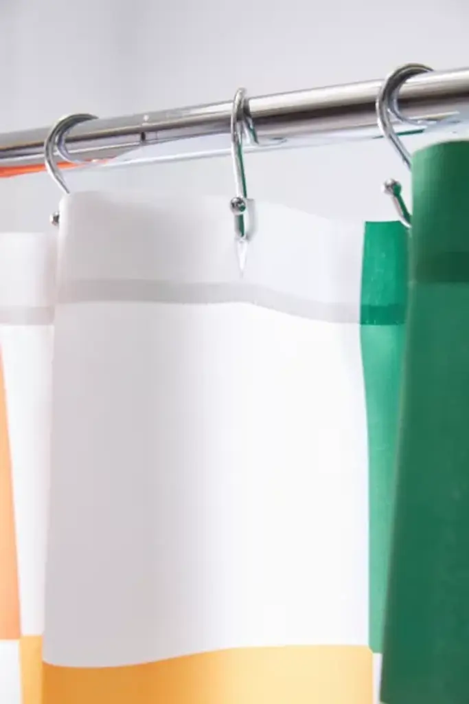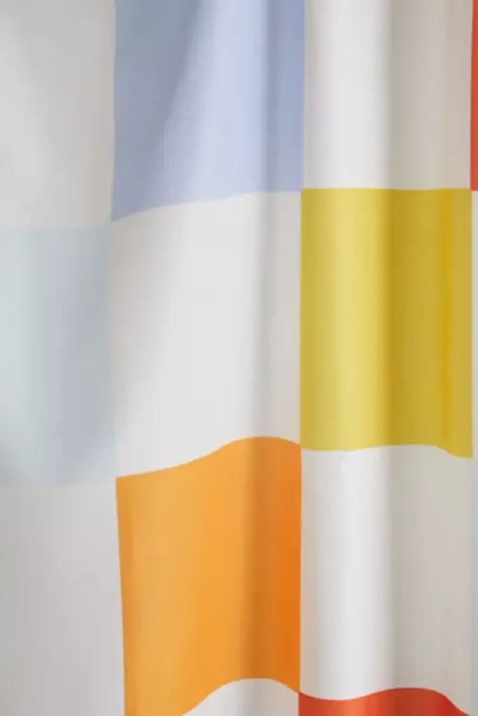 Add a vibrant pop of color to your daily routine with this shower curtain by Lane and Lucia for Deny. Features an oversized checkered motif in rainbow hues that adds a whimsical refresh to your space. Printed on crisp polyester with perforations along the top edge for easy setup. **Features** \- Patterned shower curtain by Lane and Lucia for Deny \- Finished with a checkered motif in rainbow hues \- Ready for hanging with enforced buttonholes at the top edge \- Recommended for use with shower liner **Content + Care** \- Shower curtain hooks and liner sold separately \- 100% Polyester, 150 gsm \- Machine wash \- Imported **Size** \- Dimensions: 74"l x 71"w