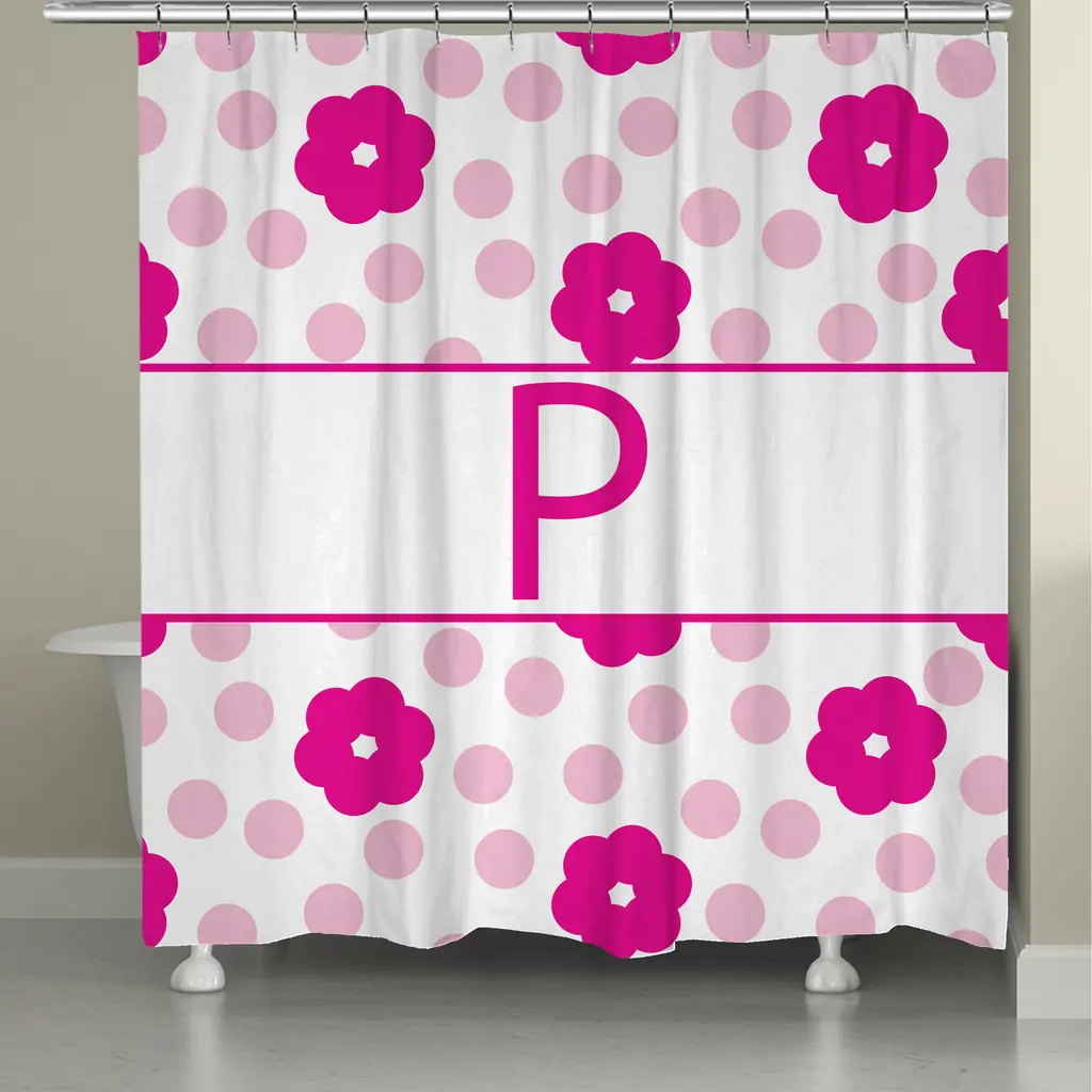 Laural Home Flowers And Polk-Dot Monogram Shower Curtain - A