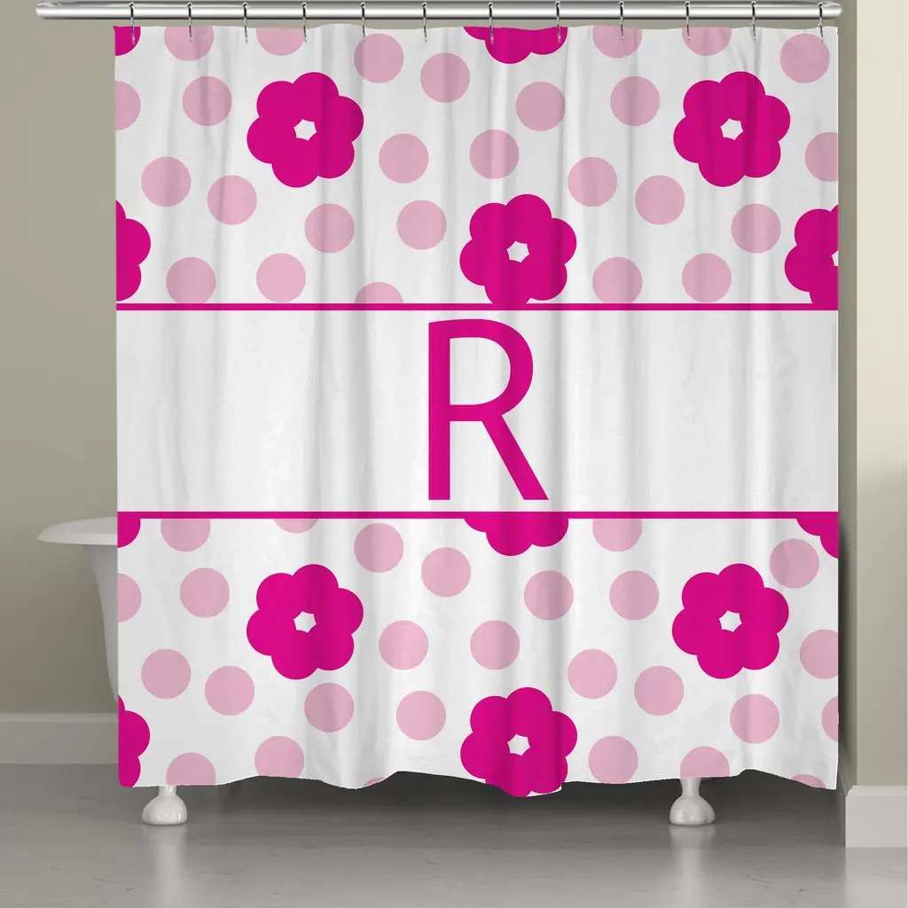 Laural Home Flowers And Polk-Dot Monogram Shower Curtain - C