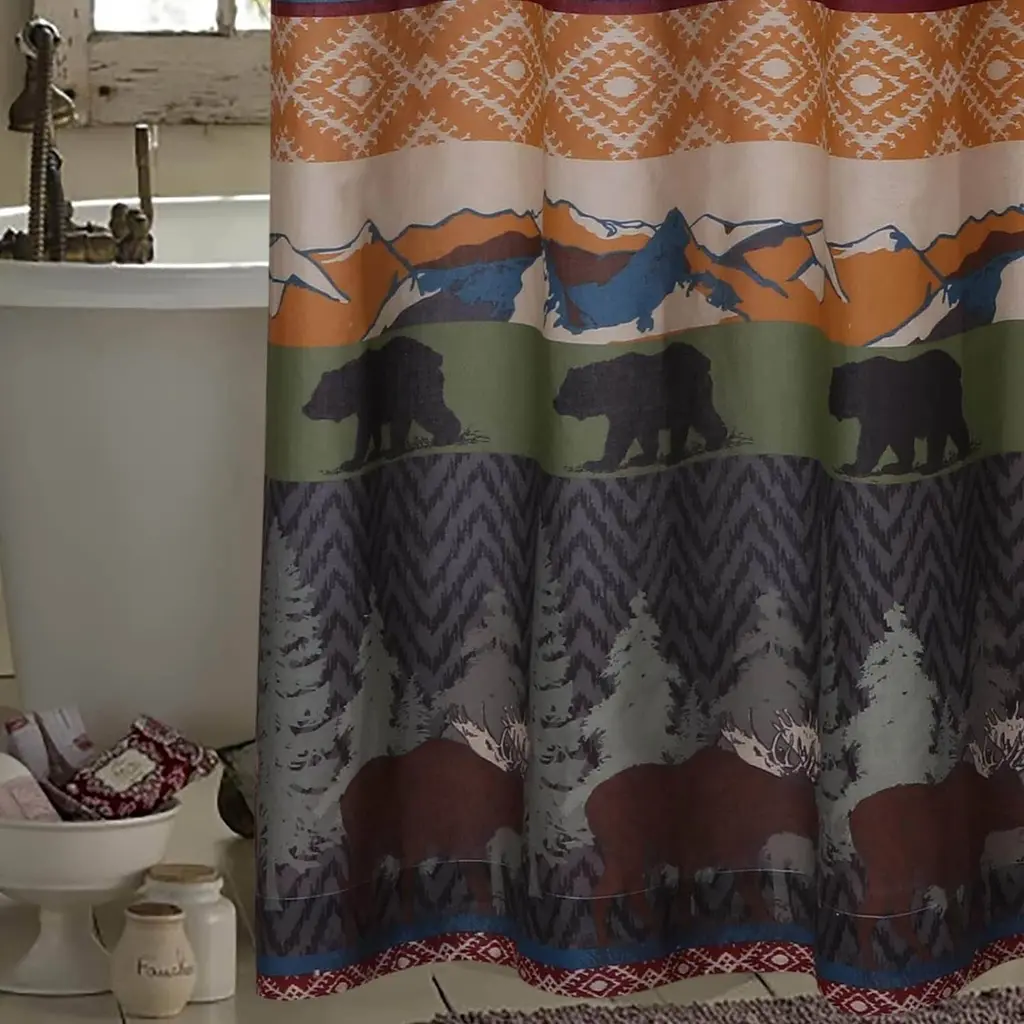 Bring the outdoors into your home with this fun patchwork of rustic outdoor images. The earth tones in Laural Home's "Lodge Collage Shower Curtain" will complement any lake, lodge or cabin decor.