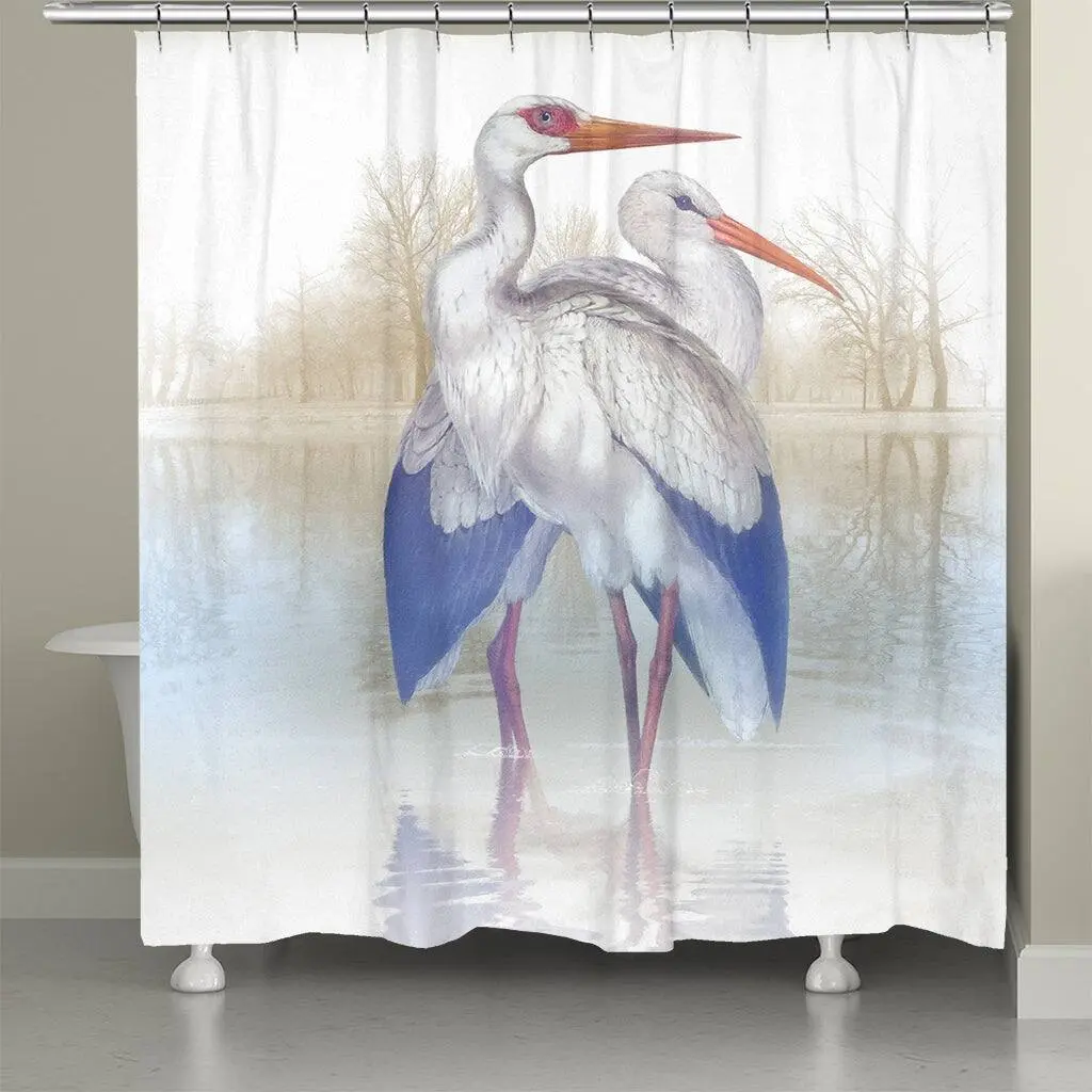 Laural Home Misty Egret Shower Curtain 71x72 - 71x72 In