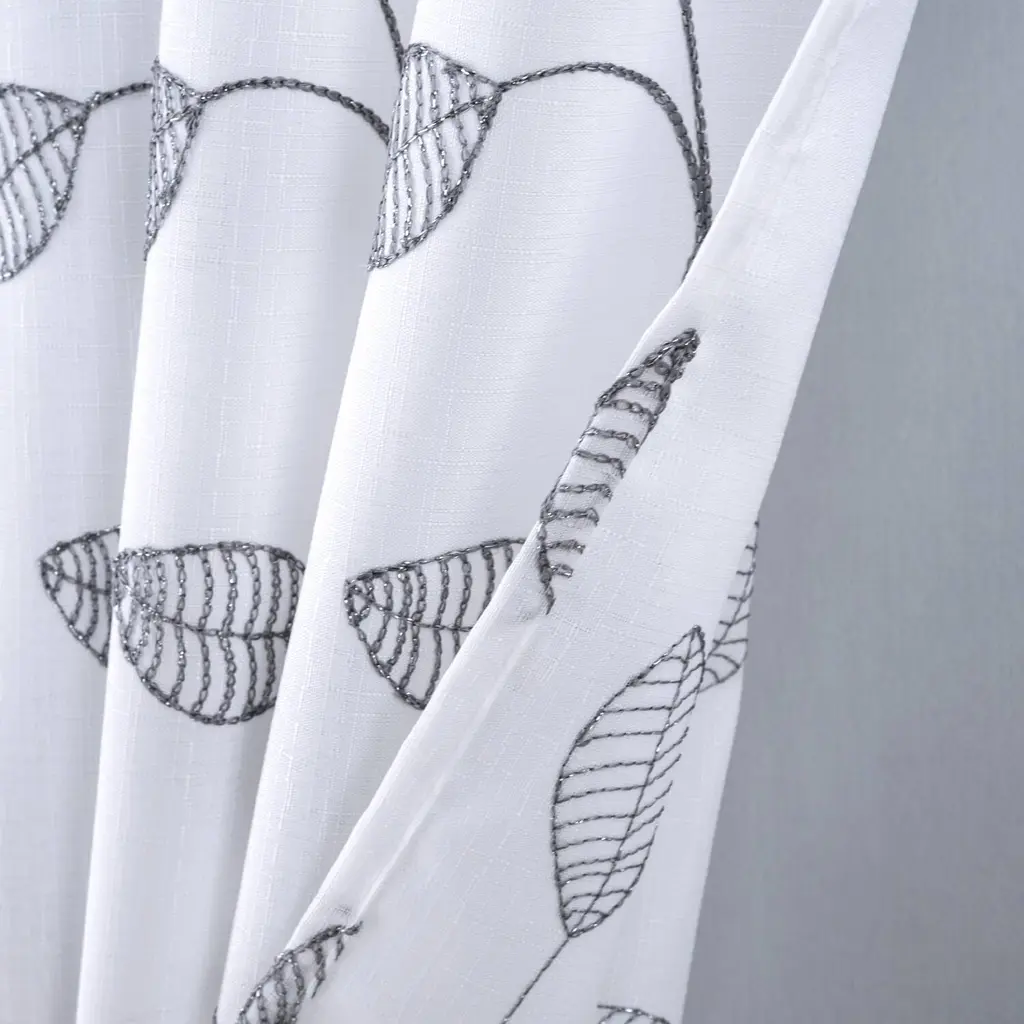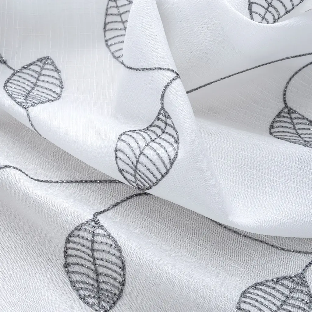 Leaf Embroidered Textured Shower Curtain - Silver