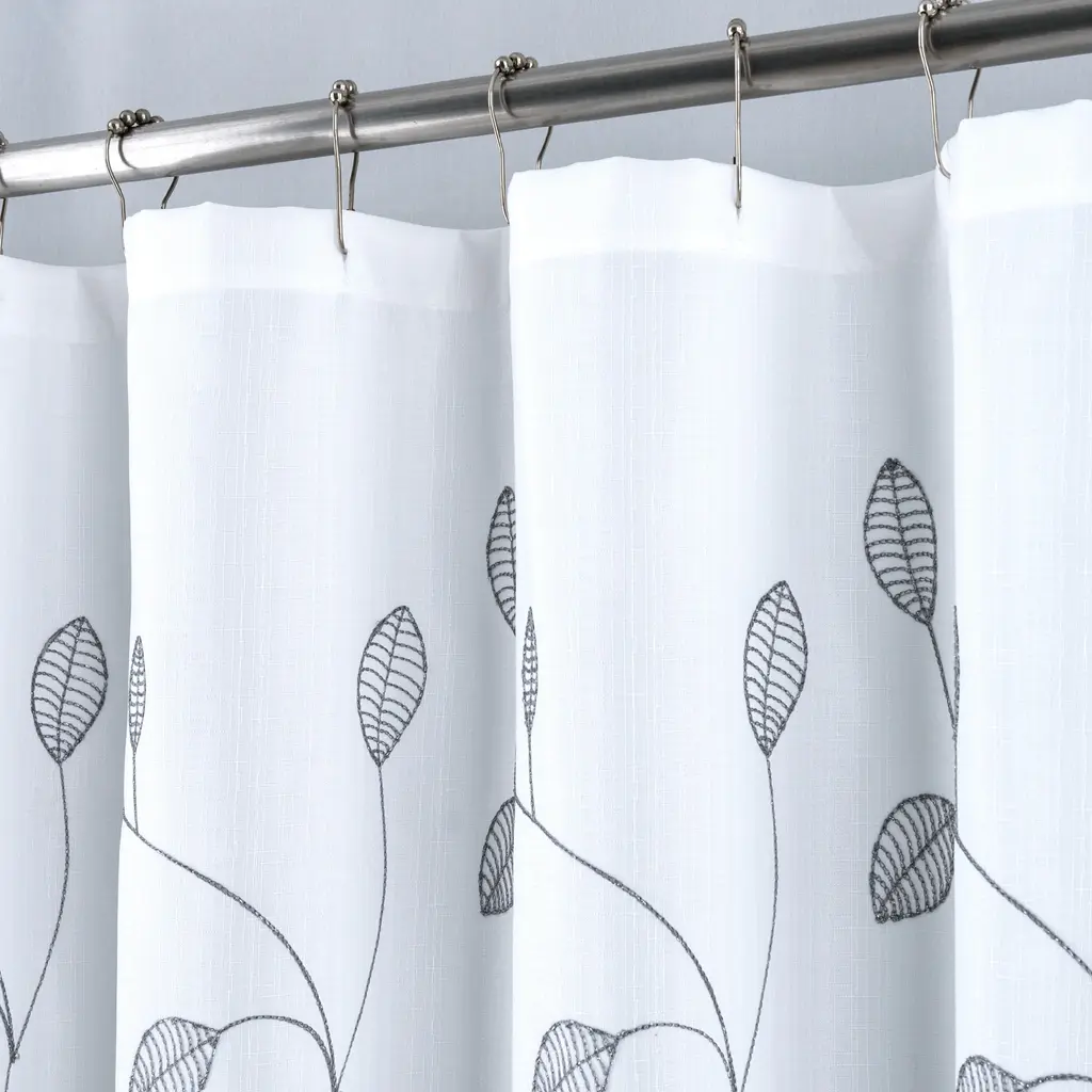 Bring nature into your bathroom with our Leaf Shower Curtain, featuring an elegant embroidered leaf design on textured fabric. This curtain adds a touch of calm and natural beauty to your space.Measuring 70" x 72", it fits most standard showers, and the built-in magnets ensure it stays in place without billowing. Plus, it's easy to care for with machine washable fabric.Features:Enhance your bathroom with the fresh, calming look of our Leaf Shower Curtain!