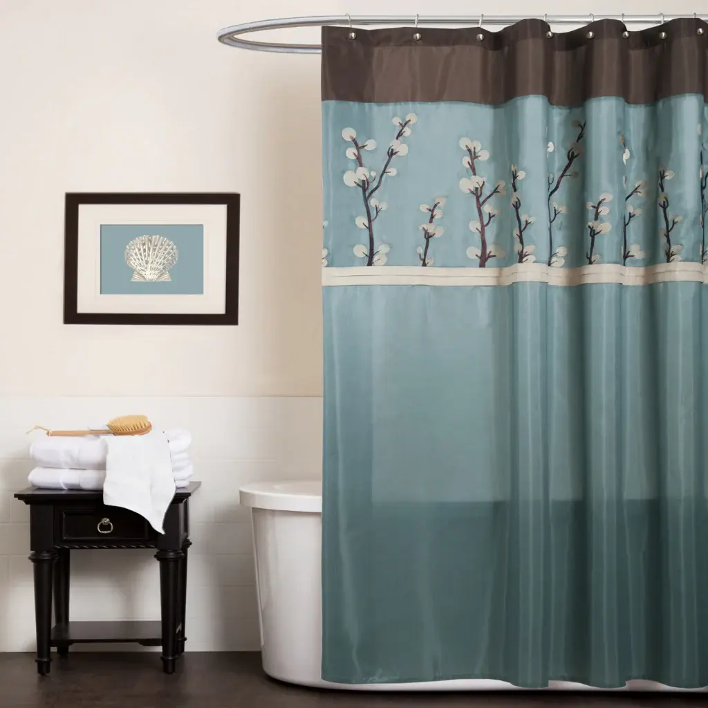 Leaf Pattern Shower Curtain - 71 X 74 - Blue