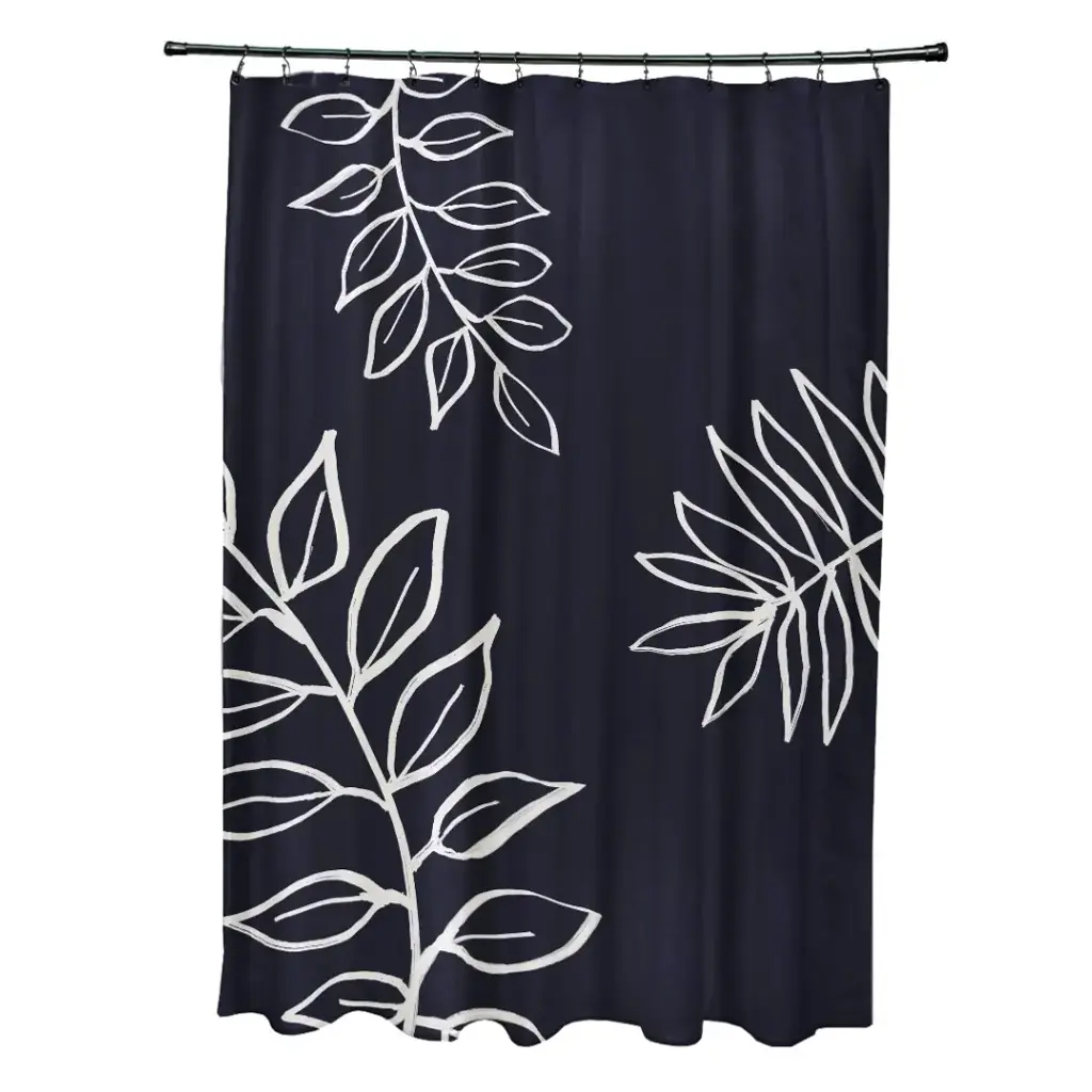 Decorate your bathroom with these stylish polyester shower curtains. Each shower curtain has 12 button holes for hook placement. E by Design shower curtains provide a fun and easy way to update your bathroom.Features:State: North Carolina12 button holes for hooksPackage includes: Shower curtainSetting: IndoorType: Shower curtainColor options: Navy blue and ivory, green and ivory, grey and ivory, purple and ivory, beige and ivory Materials: PolyesterDimensions: 71 inches wide x 74 inches longStory Behind the Art:E by Design has an element for everyone s home whether your style is elegant or eclectic. With our wide range of textile products, you can put a piece of yourself in every room. Following the current trends and bringing the classics to life, E by Design is ready to make your home everything about you What is Worldstock? The handcrafted nature of this product will produce minor differences in artwork, color/shade, size and overall design. Subtle variations will occur from piece to piece and may not appear exactly as pictured, adding to its unique qualities. Measurements may vary slightly. If buying two of the same item, slight differences should be expected. Note: Color discrepancies may occur between this product and your computer screen. ImportedAssembly required.