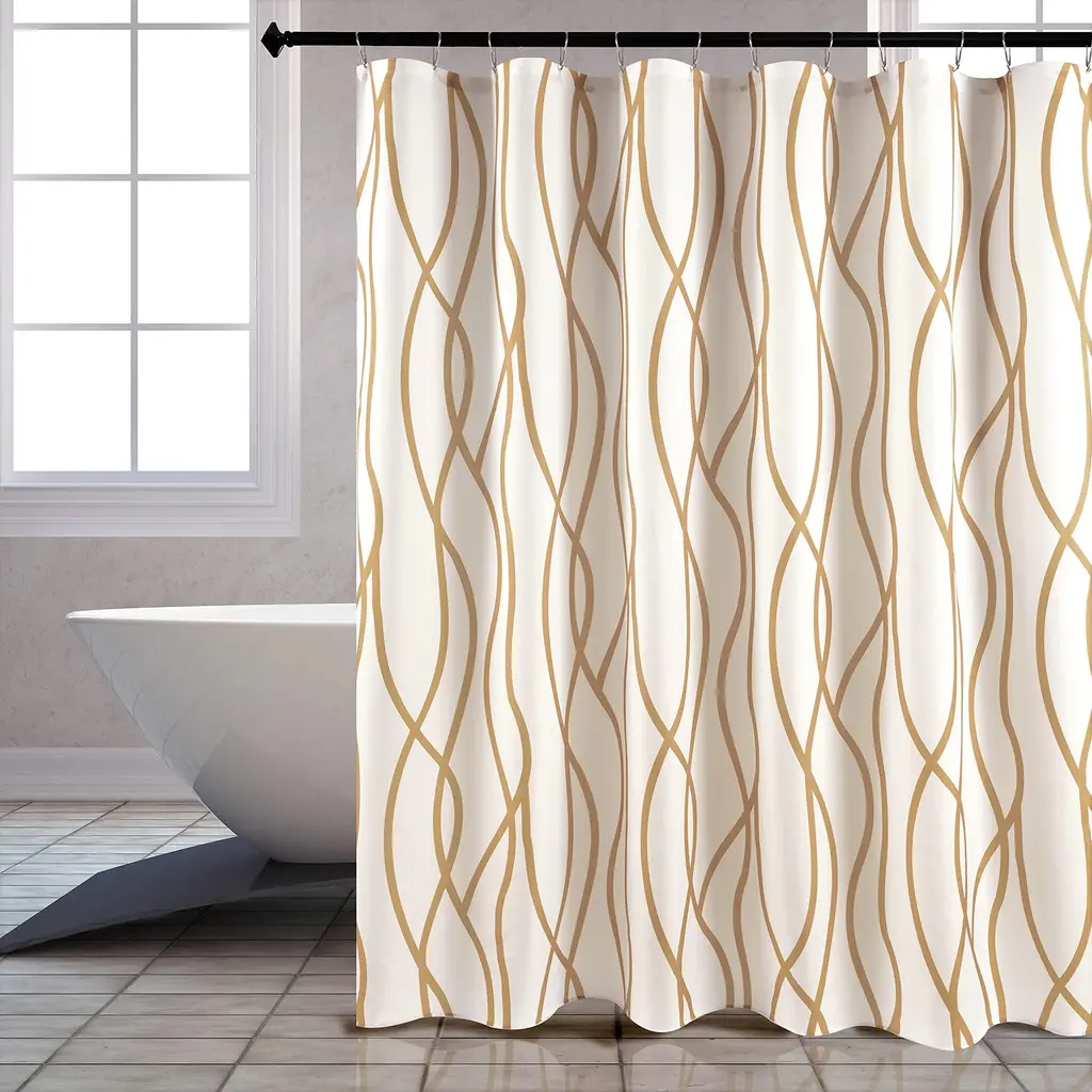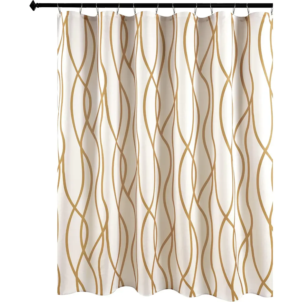 Long Textured Fabric Shower Curtain 72 Inch By 72 Inch, Gold Printed - Multi