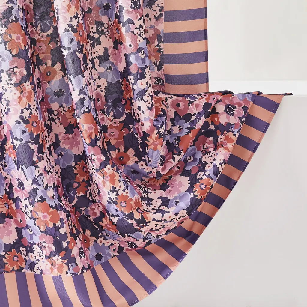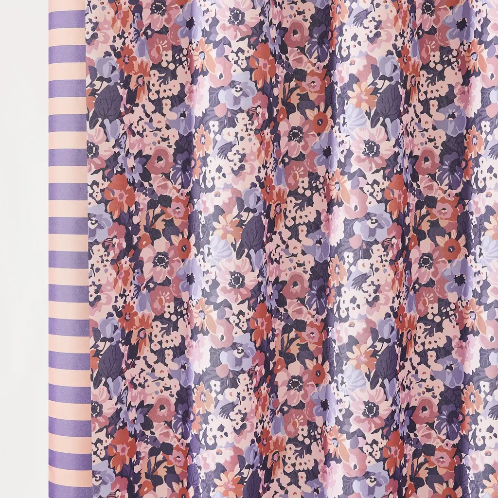 Camouflage yourself in florals with this bold botanical shower curtain. Designed with an organic pattern of blooming flowers and framed with a coordinating striped border for a nostalgic feel. Its the perfect addition to a modern or cottage style bathroom. Sold as a single bath curtain, measuring 72 inches wide by 72 inches long and made from a soft microfiber. Installation is easy with 12 button holes at the top to hang with shower hooks or rings. Pair this fabric shower curtain with a liner, sold separately. Machine washable for easy care. Set Details: 1-Pc Set Includes: 1 Shower Curtain Dimensions: Shower Curtain: 72"H x 72"W