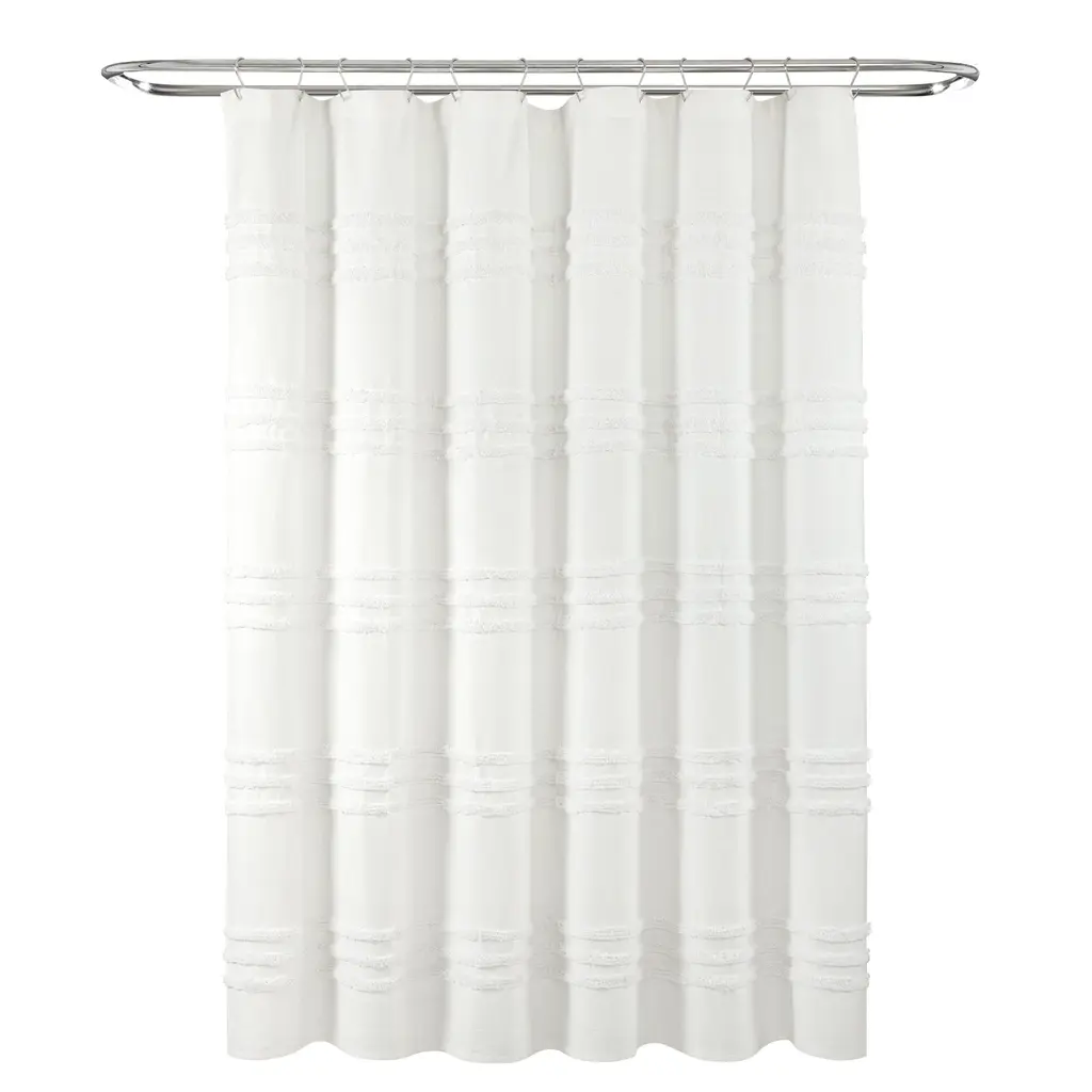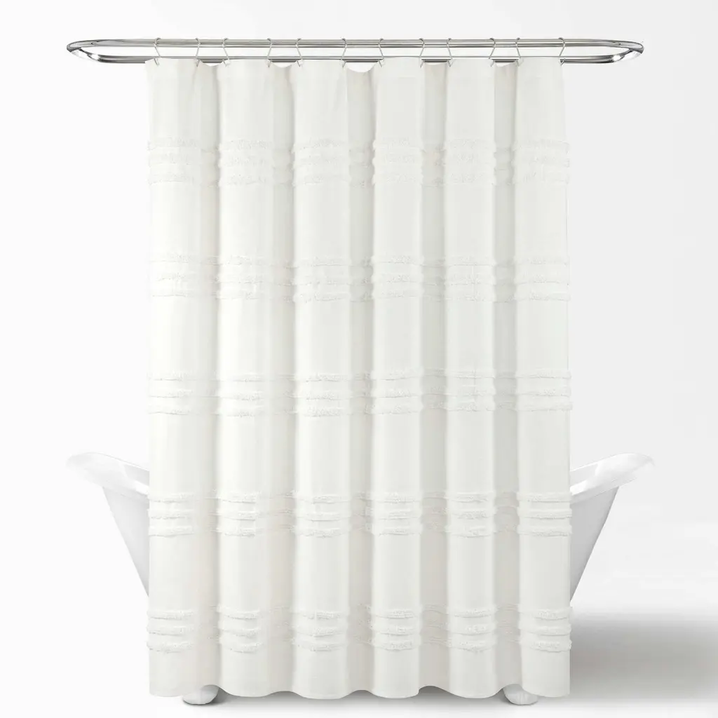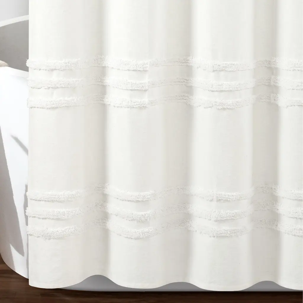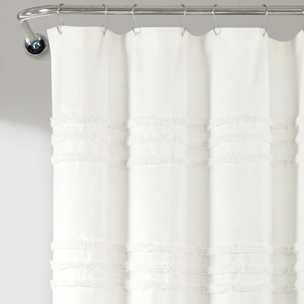 Lush Decor Boho Kendra Tufted Yarn Dyed Eco-Friendly Recycled Cotton Shower Curtain Single - White - 72" X 72"