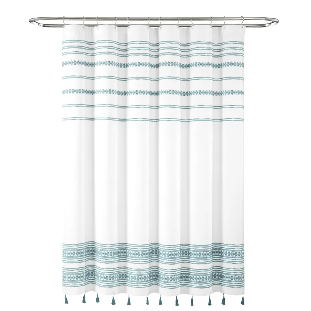 Lush Decor Breezy Chic Tassel Jacquard Eco-Friendly Recycled Cotton Shower Curtain Single - Blue - 72" X 72"