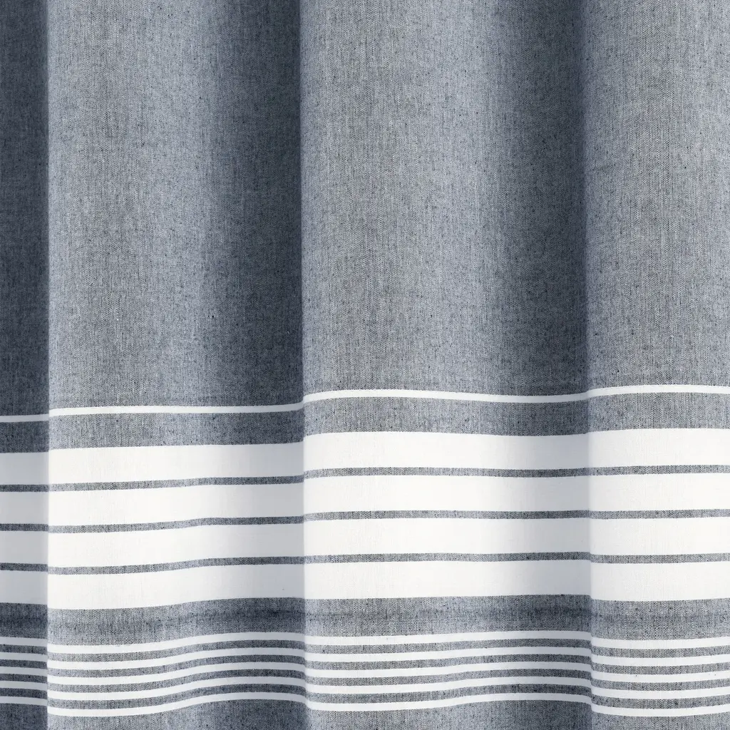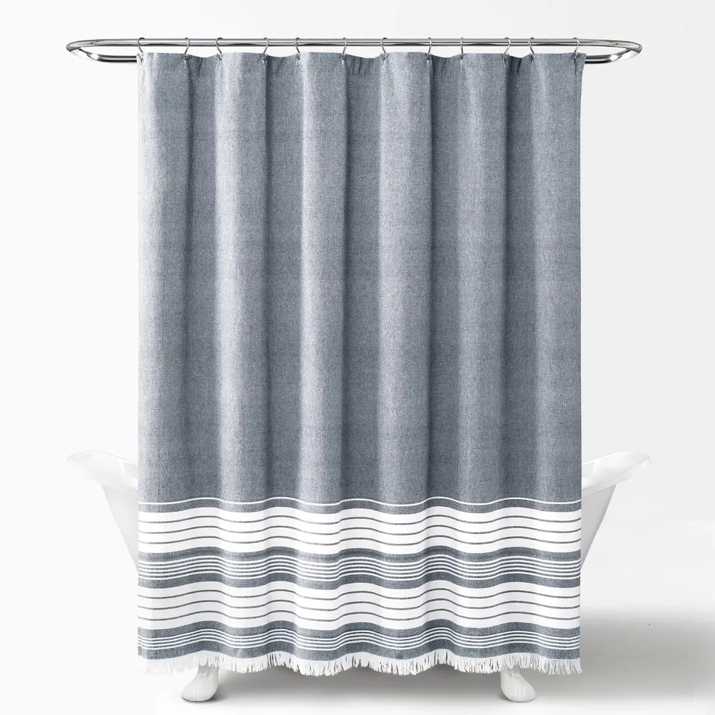 Lush Decor Nantucket Yarn Dyed Cotton Tassel Fringe Shower Curtain - Navy