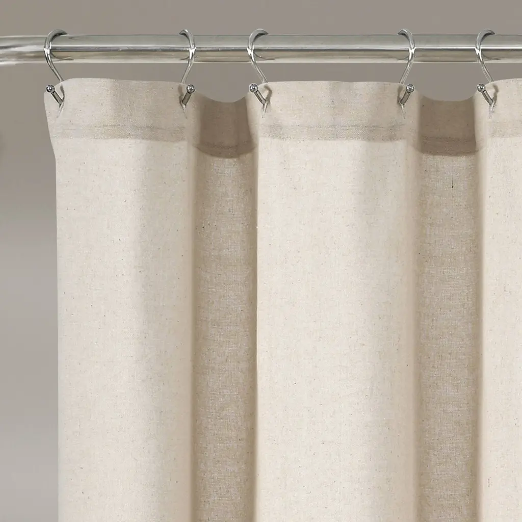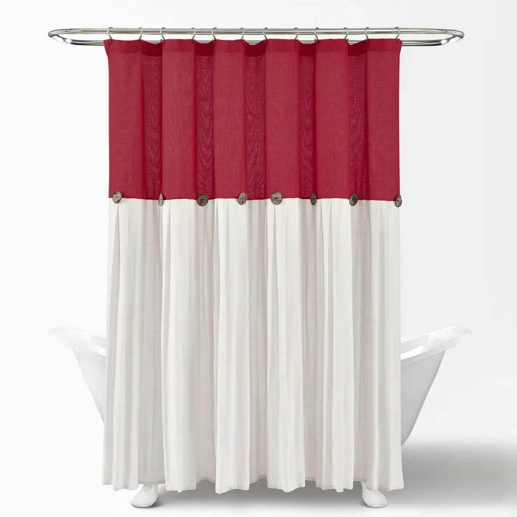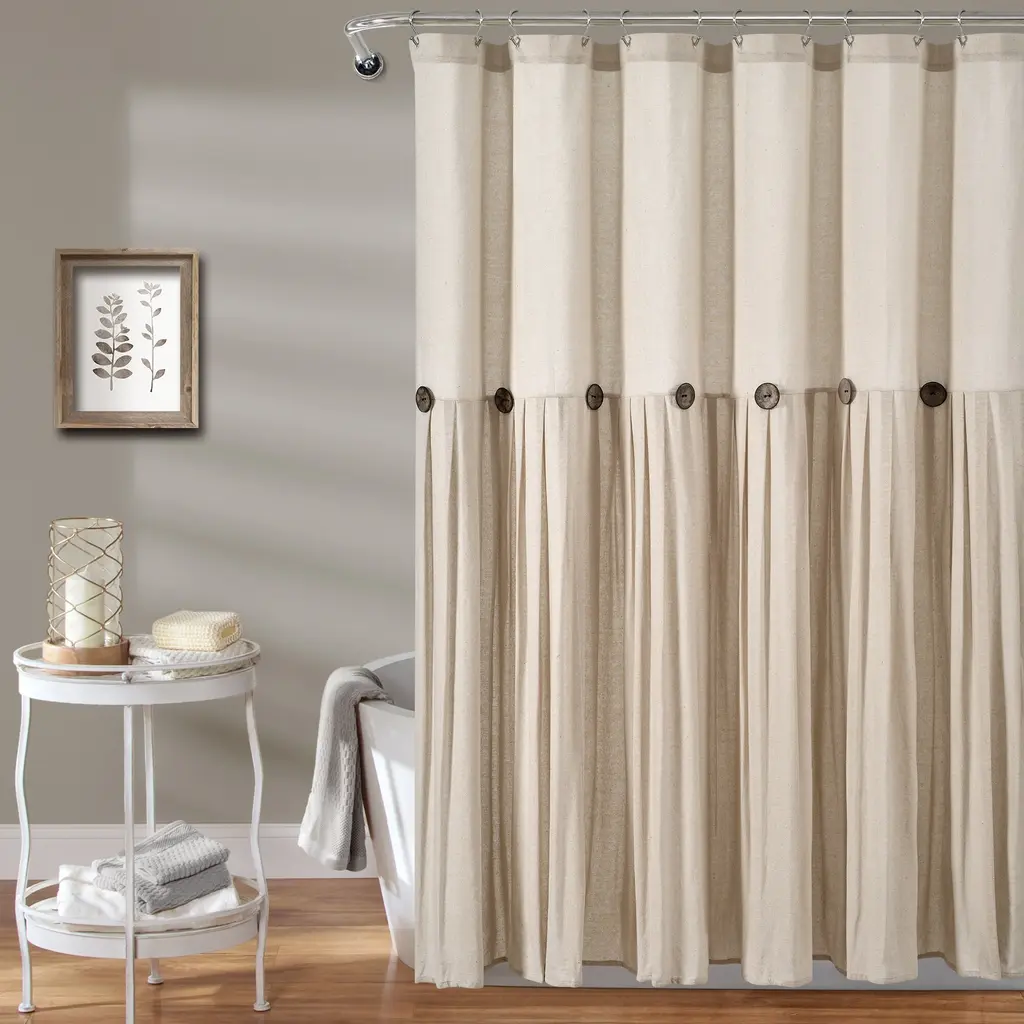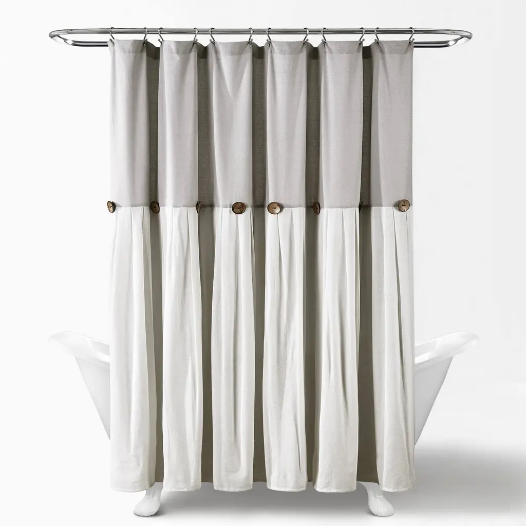 Add a touch of casual elegance to your bathroom with this Lush Decor Two-tone Linen Button Shower Curtain. With its charming button embellishments and pleating, this shower curtain is perfect to brighten up your bathroom décor. Made of a high-quality cotton/polyester blend fabric, this curtain comes in various two-tone color options to best match your bathroom's color scheme. This shower curtain is machine washable and easy to maintain.Features: