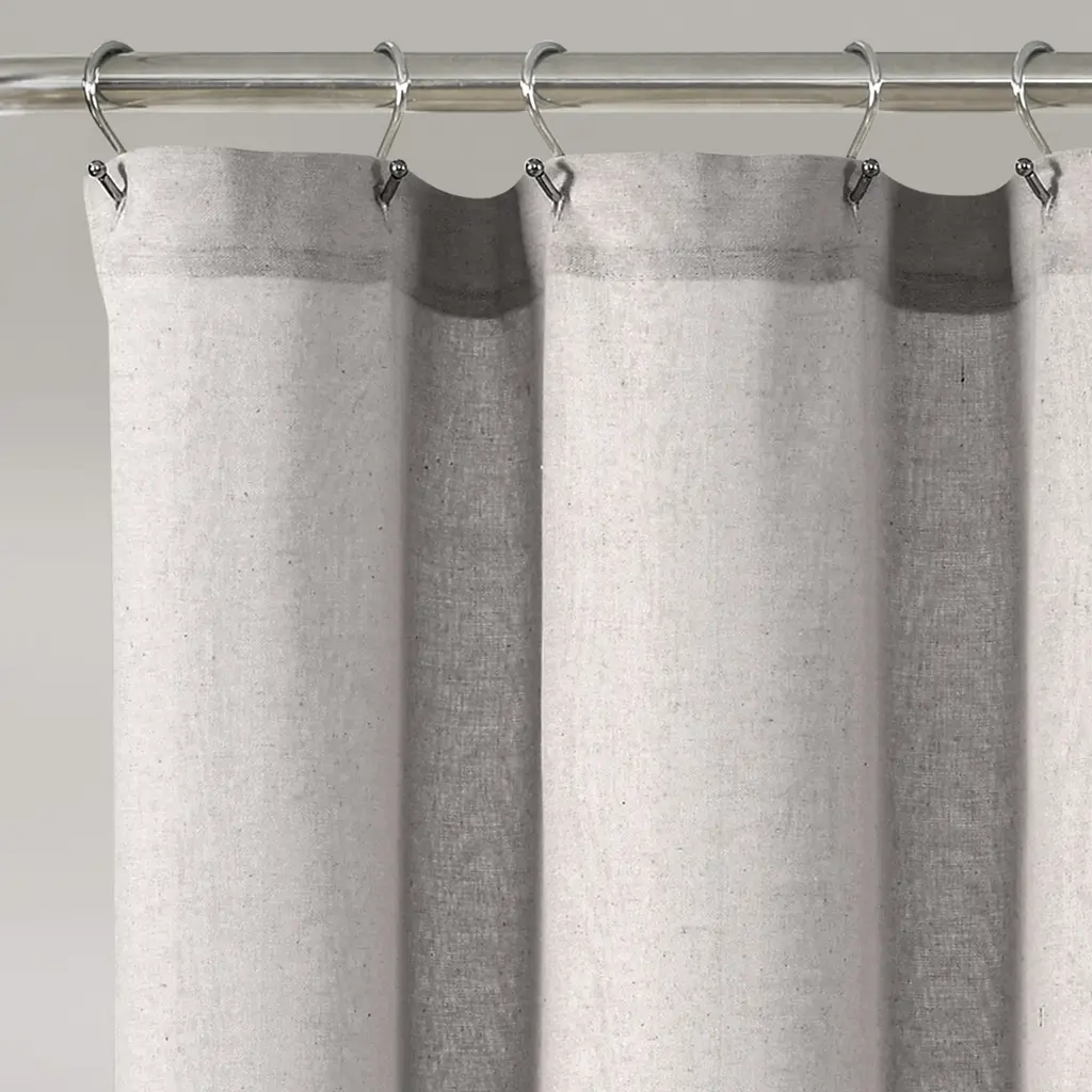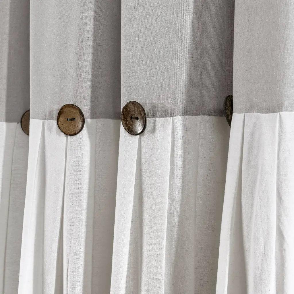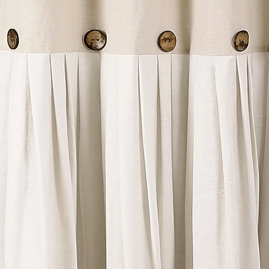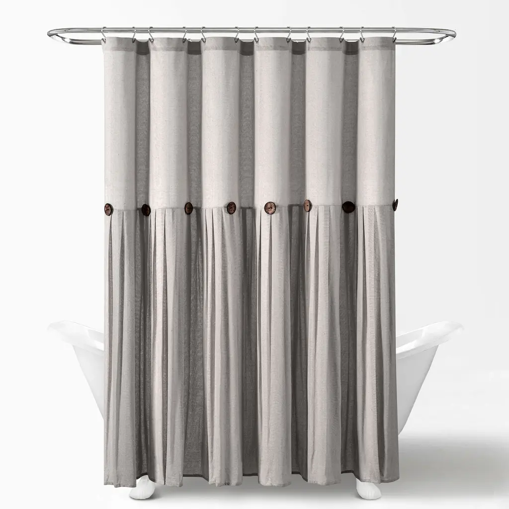 Add a touch of casual elegance to your bathroom with this Lush Decor Two-tone Linen Button Shower Curtain. With its charming button embellishments and pleating, this shower curtain is perfect to brighten up your bathroom décor. Made of a high-quality cotton/polyester blend fabric, this curtain comes in various two-tone color options to best match your bathroom's color scheme. This shower curtain is machine washable and easy to maintain.Features: